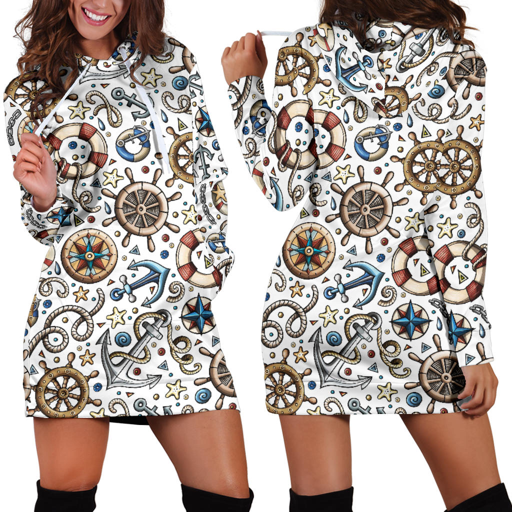 Cute Nautical Steering Wheel Anchor Pattern Women'S Hoodie Dress