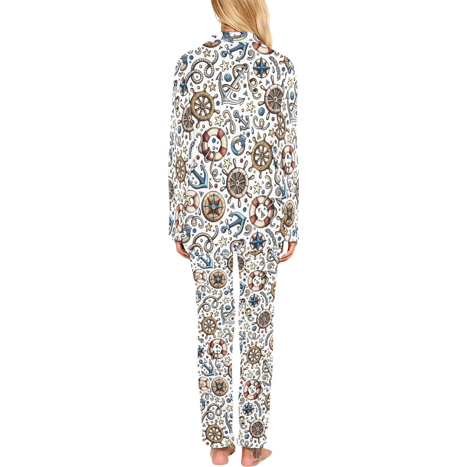 Cute nautical steering wheel anchor pattern Women's Long Pajama Set