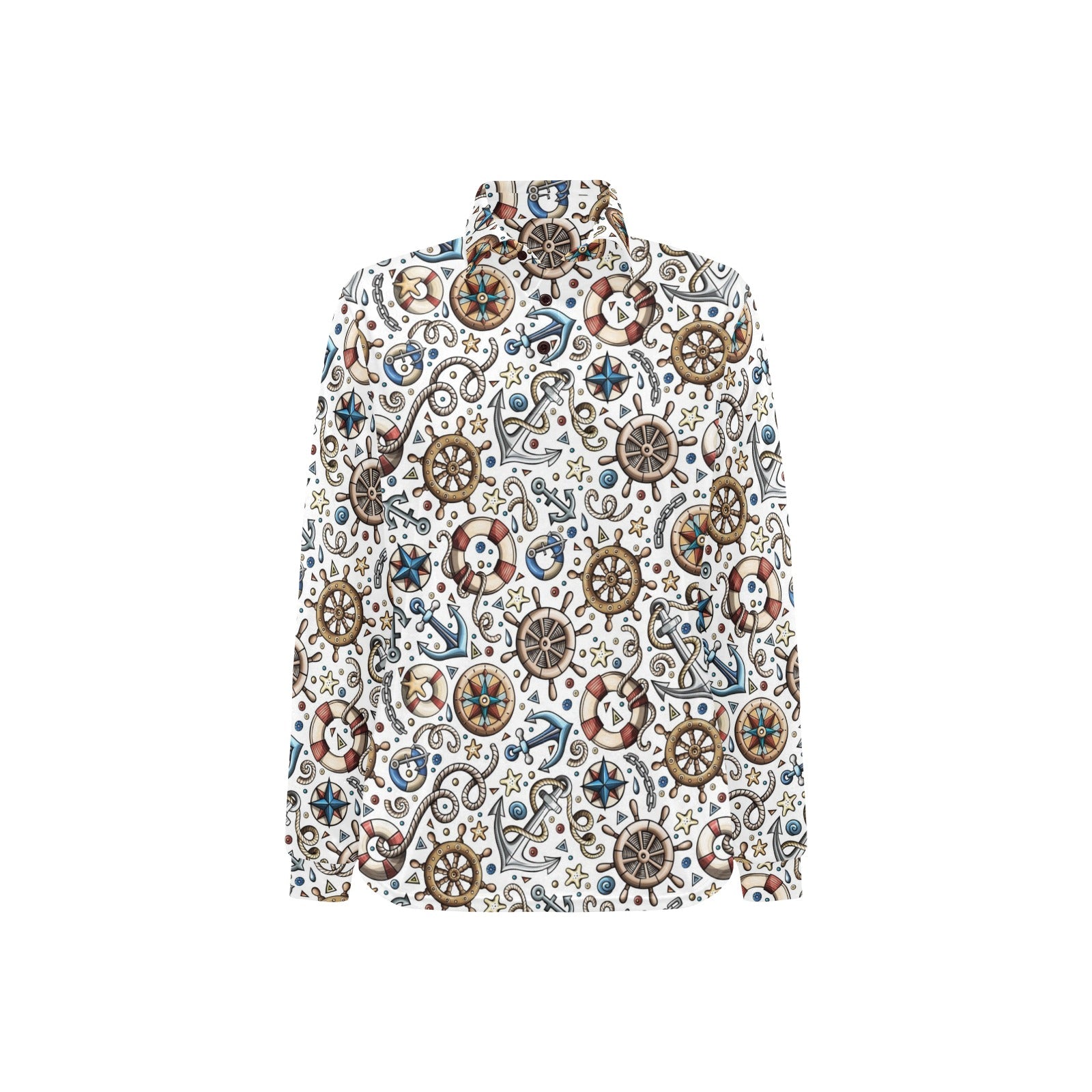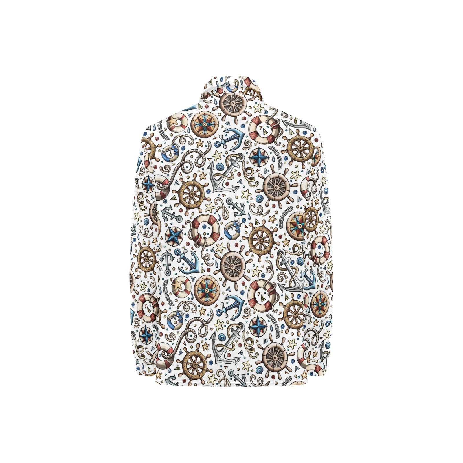 Cute nautical steering wheel anchor pattern Women's Long Sleeve Polo Shirt