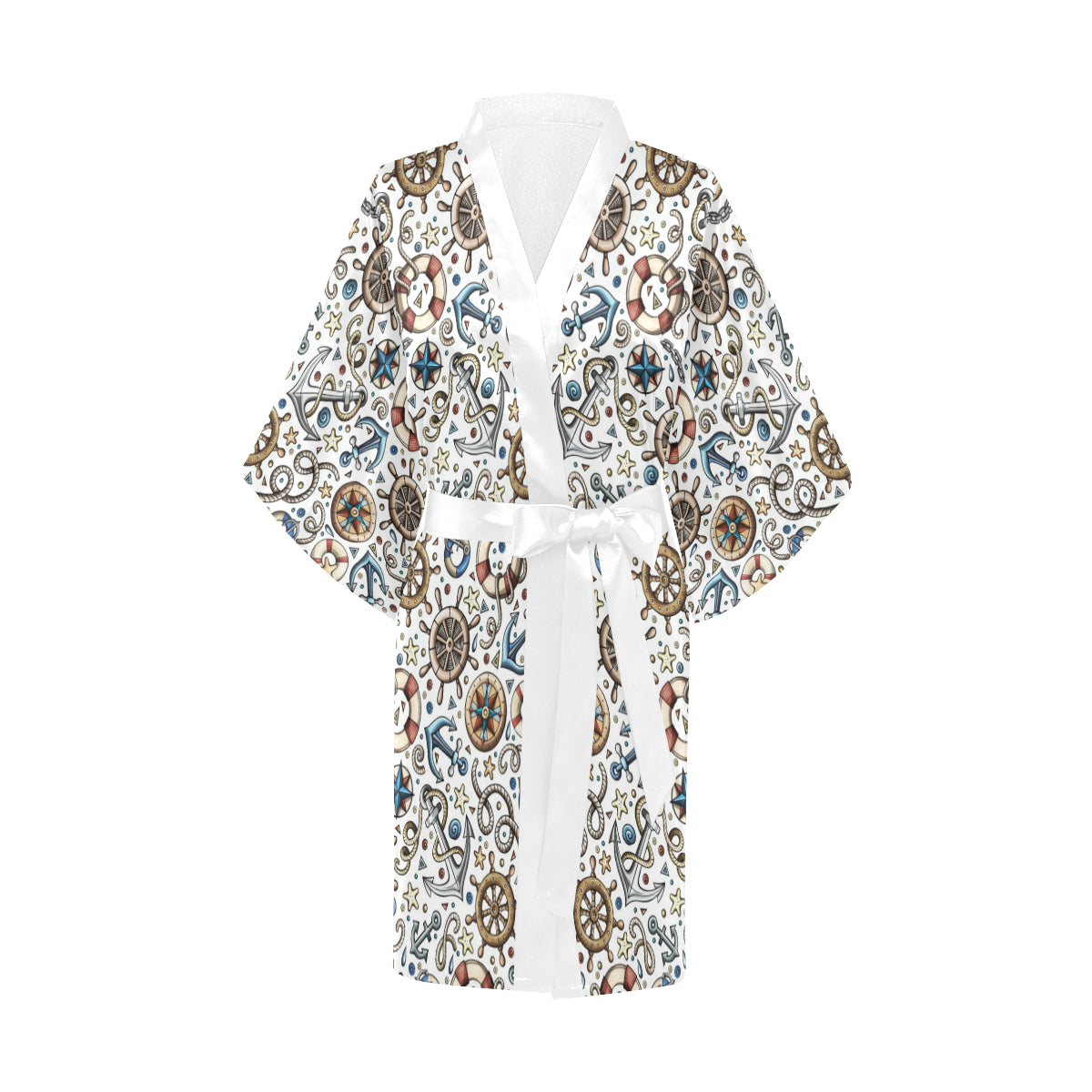Cute nautical steering wheel anchor pattern Women's Short Kimono Robe