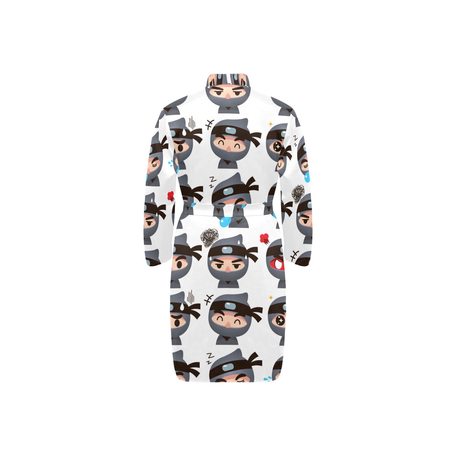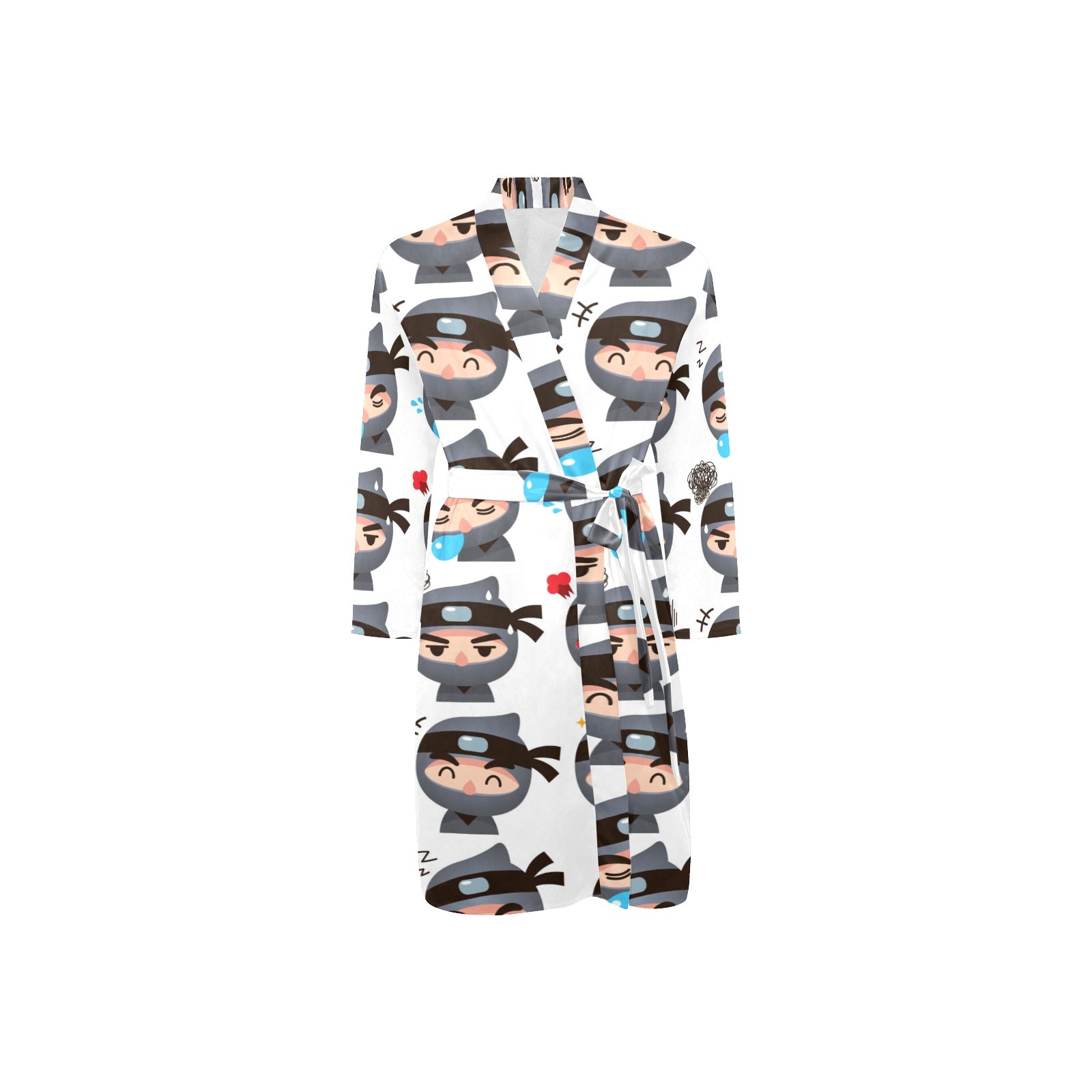 Cute ninja design pattern Men's Long Sleeve Belted Night Robe