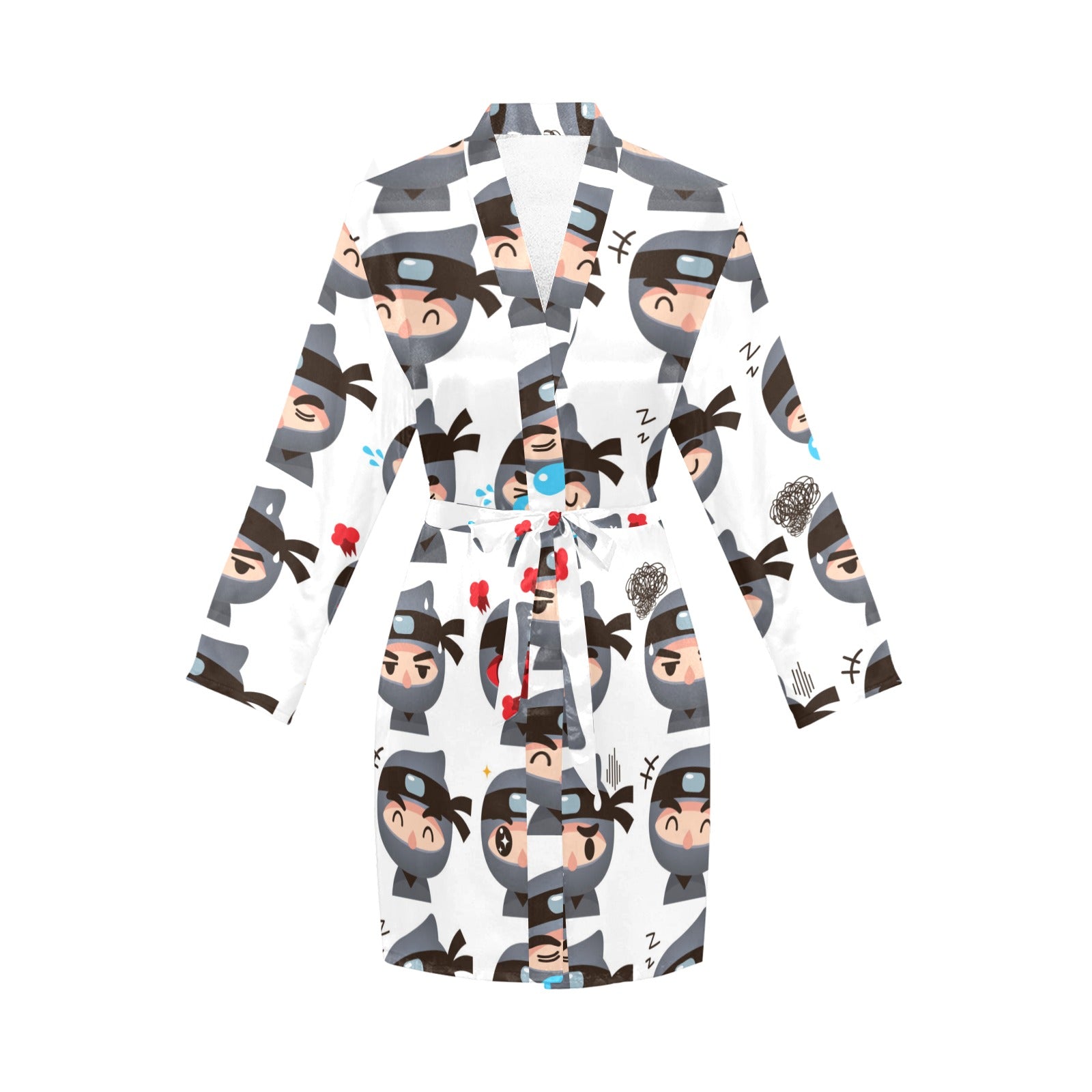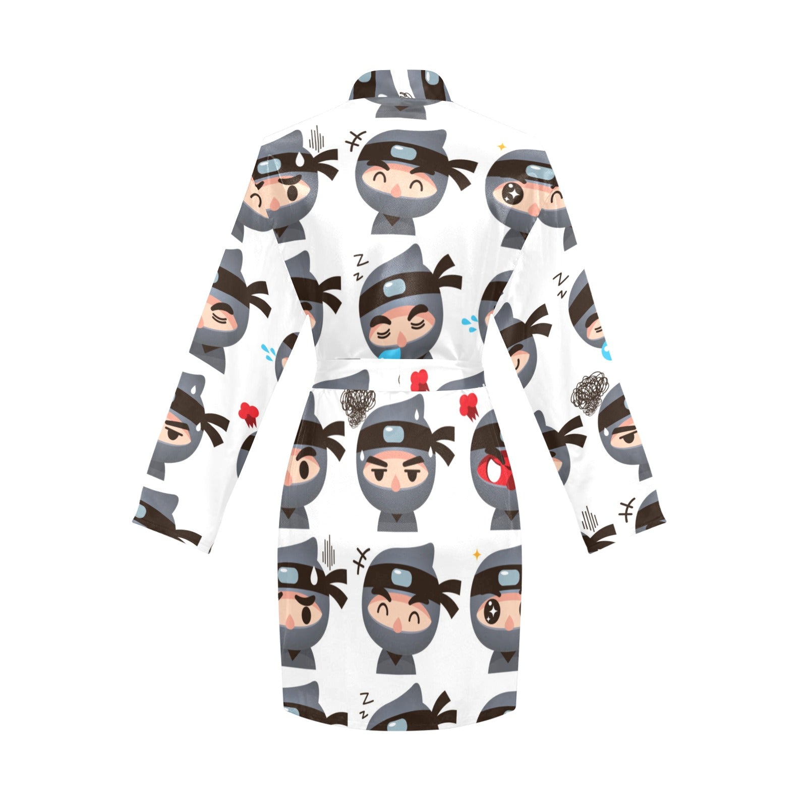 Cute ninja design pattern Women's Long Sleeve Belted Night Robe