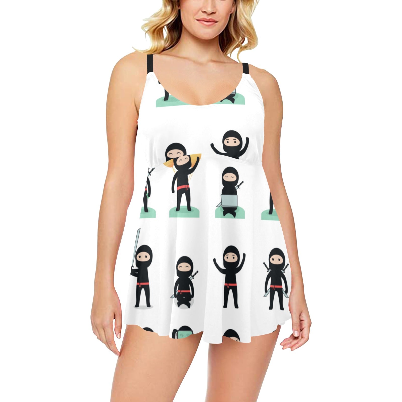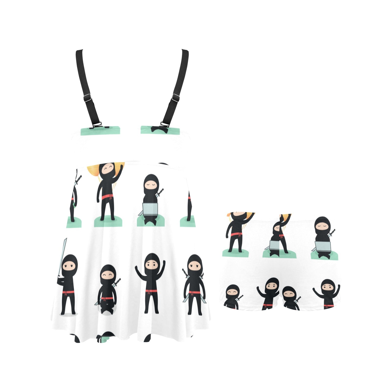 Cute ninja katana sword pattern Chest Sexy Pleated Two Piece Swim Dress