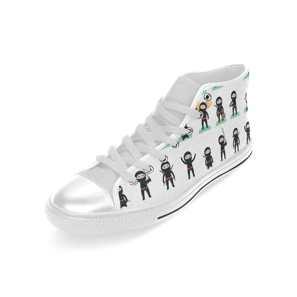 Cute ninja katana sword pattern Men's High Top Canvas Shoes White