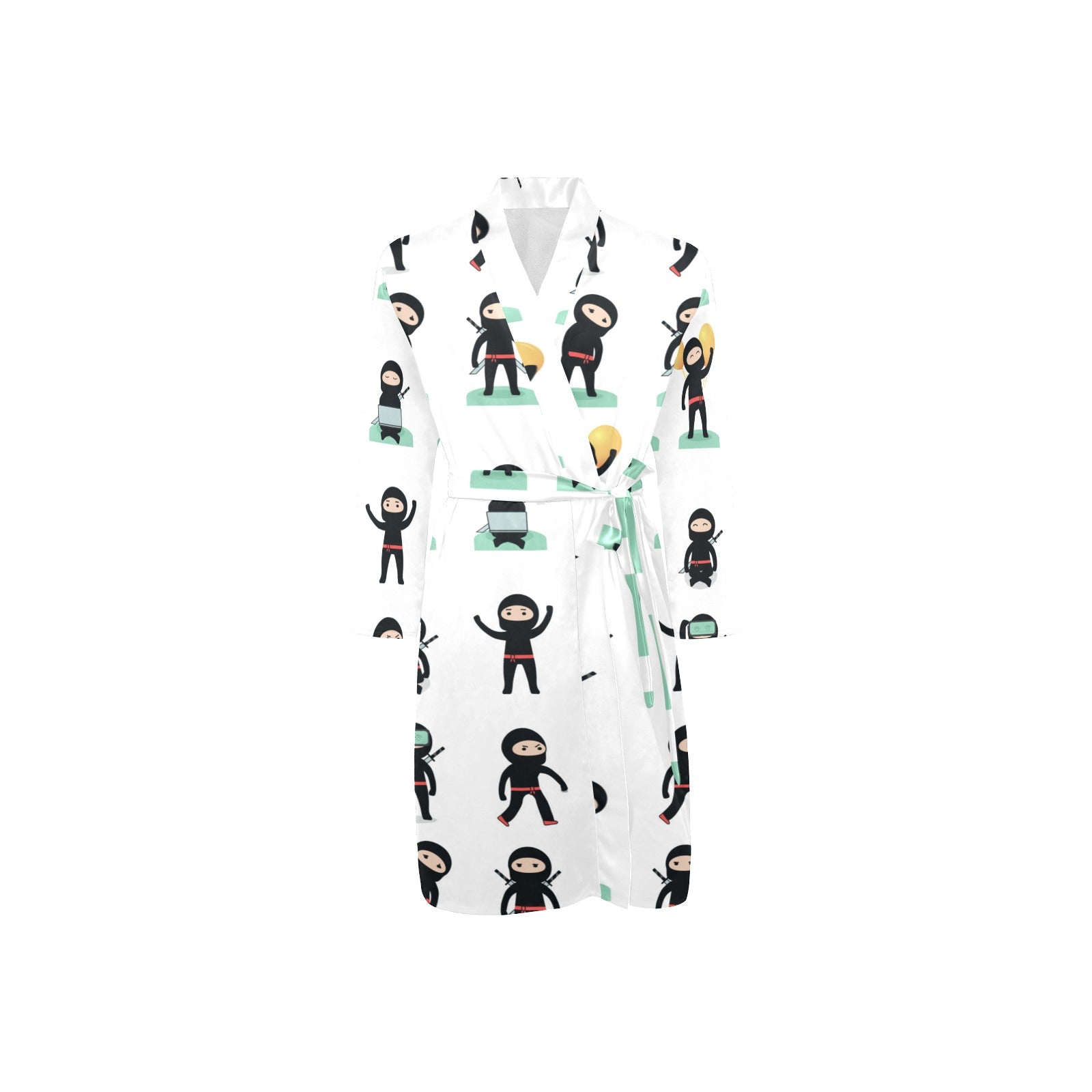Cute ninja katana sword pattern Men's Long Sleeve Belted Night Robe