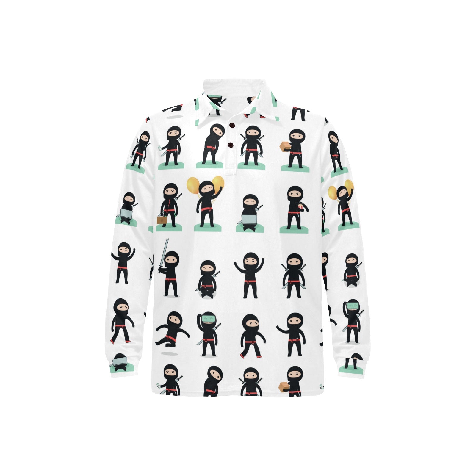 Cute ninja katana sword pattern Men's Long Sleeve Polo Shirt