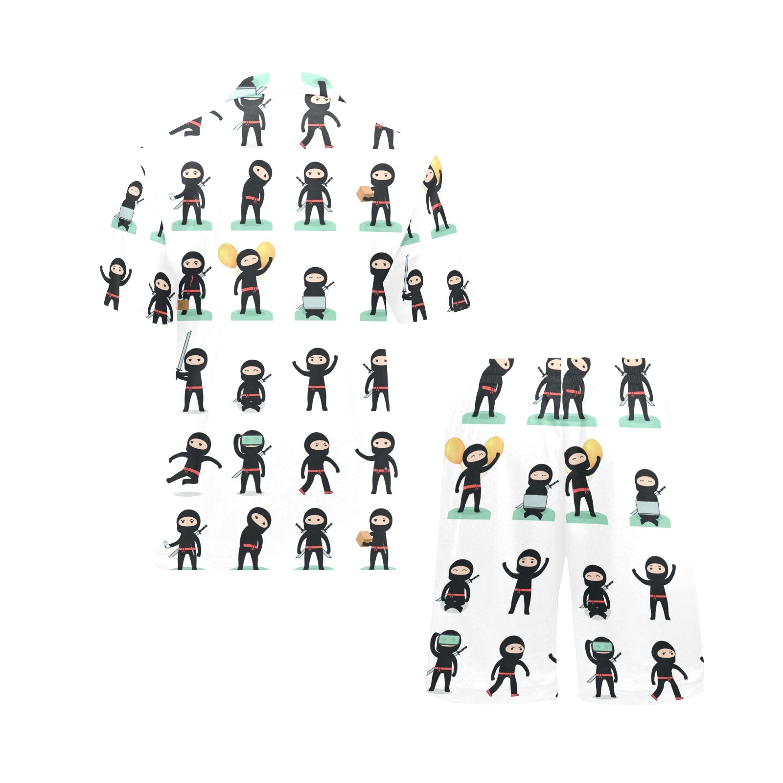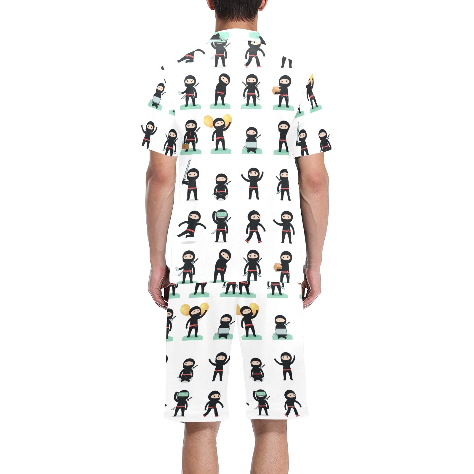 Cute ninja katana sword pattern Men's V-Neck Short Pajama Set