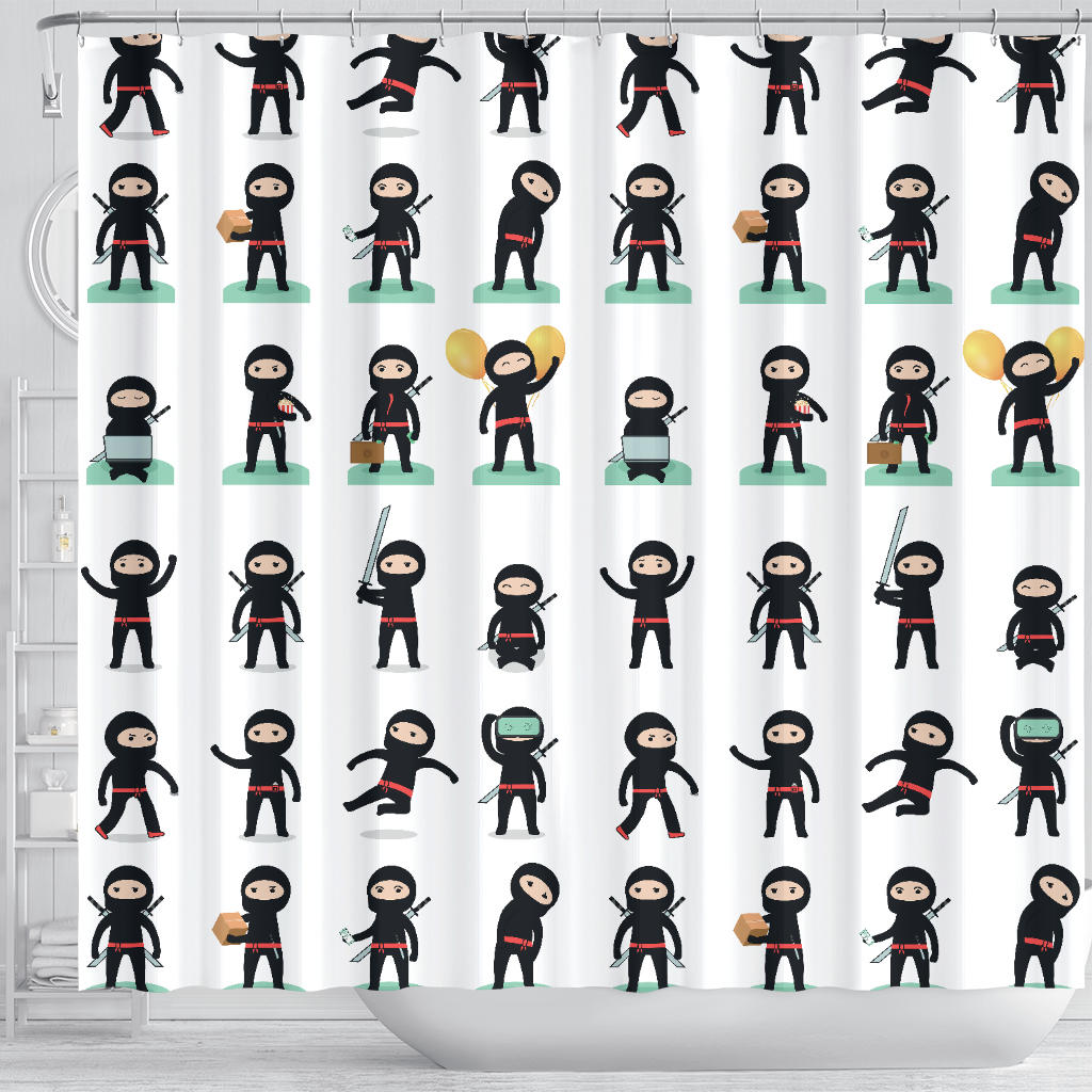 Cute Ninja Katana Sword Pattern Shower Curtain Fulfilled In US