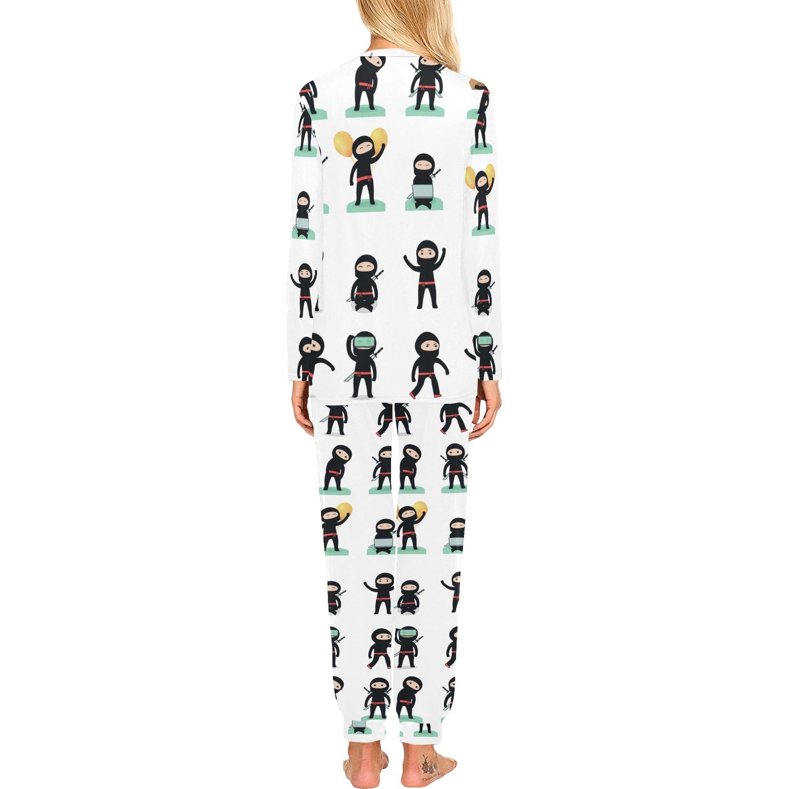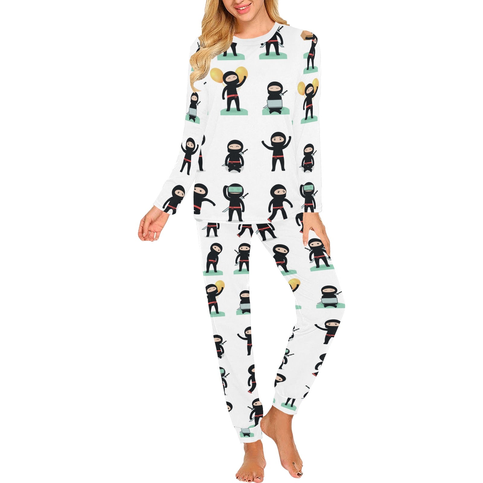 Cute ninja katana sword pattern Women's All Over Print Pajama Set