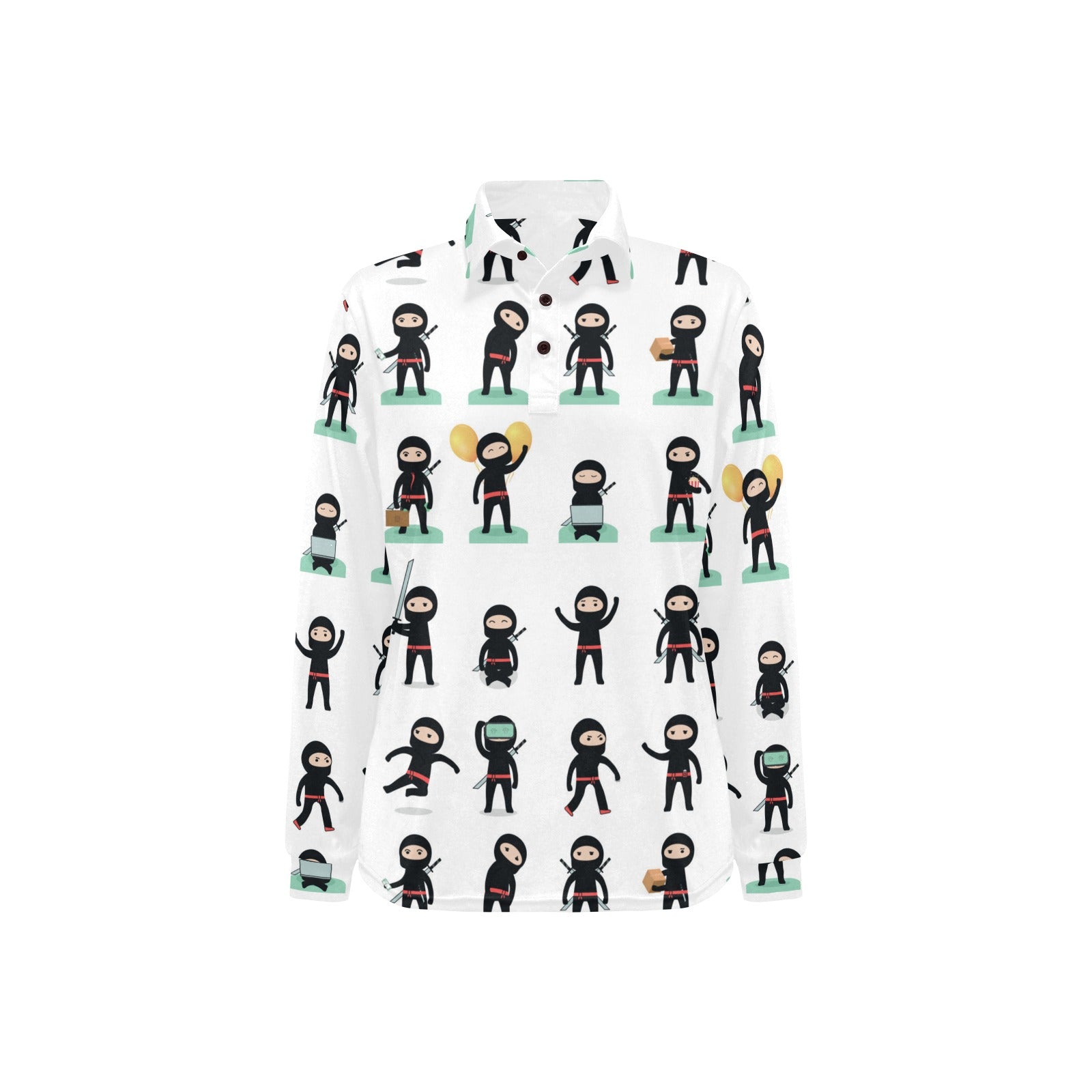 Cute ninja katana sword pattern Women's Long Sleeve Polo Shirt