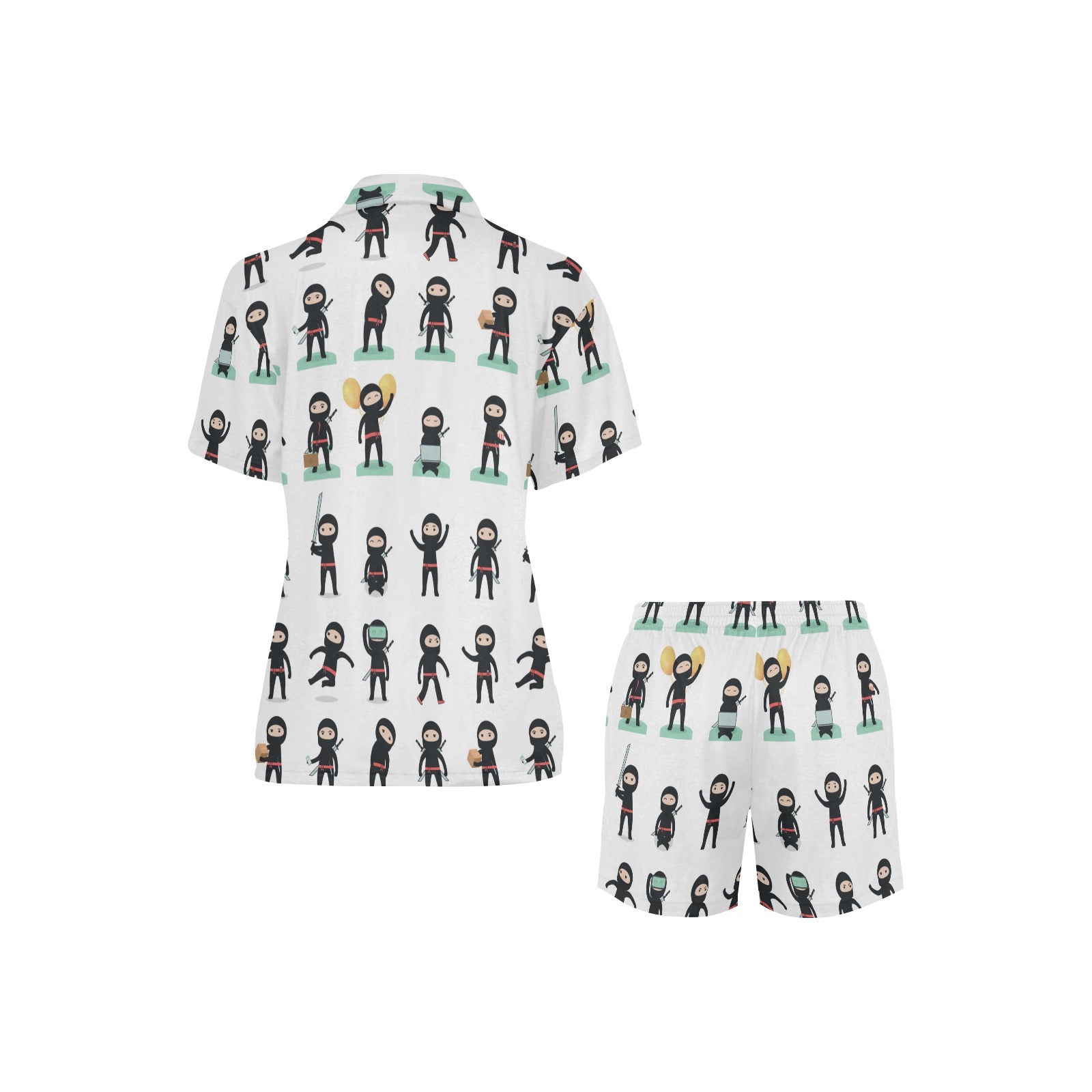 Cute ninja katana sword pattern Women's V-Neck Short Pajama Set