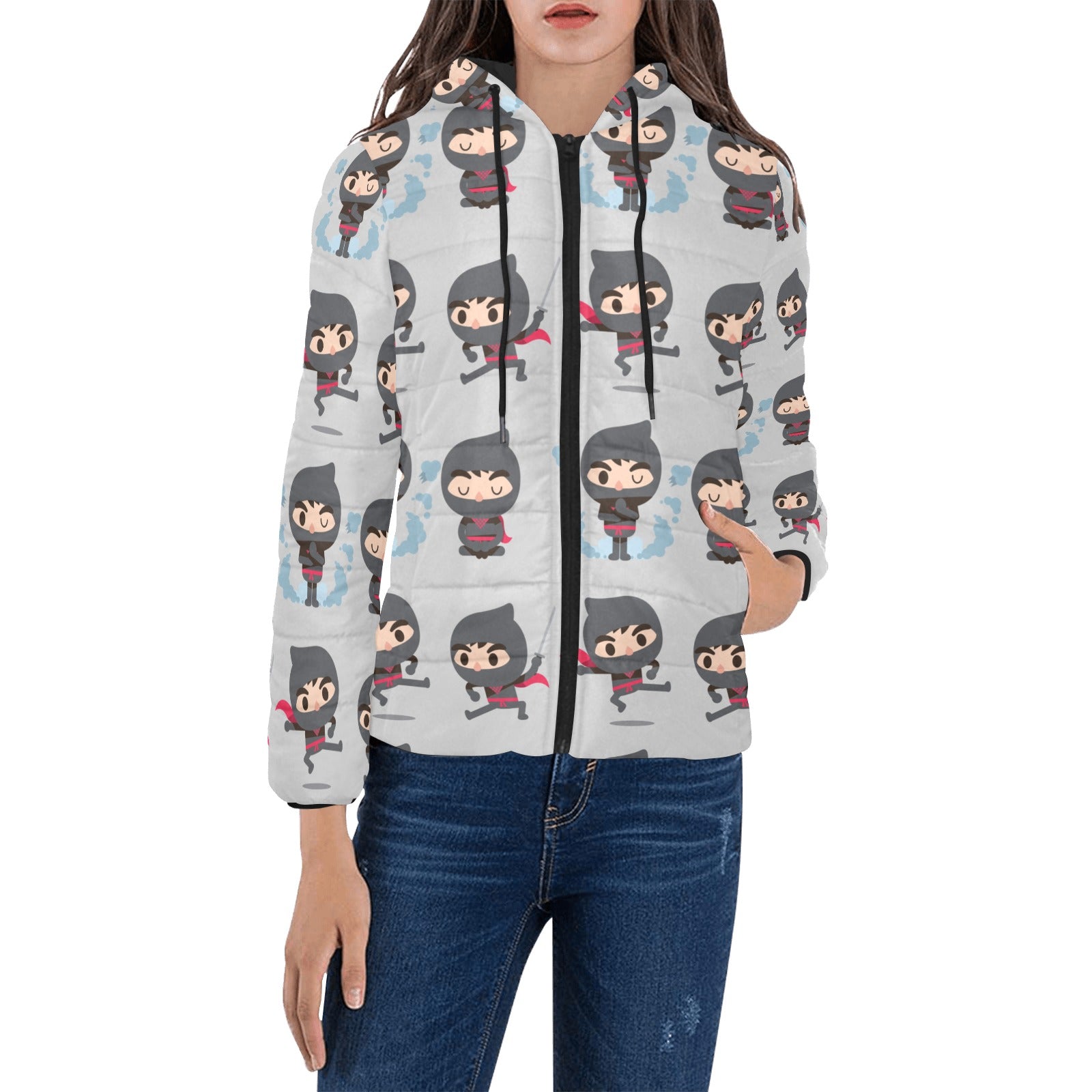 Cute ninja pattern Women's Padded Hooded Jacket