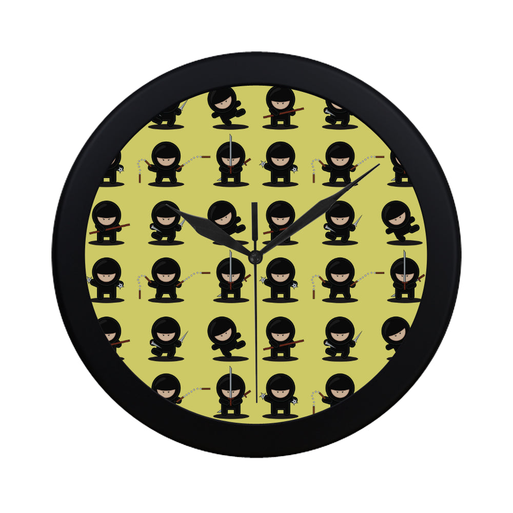 Cute ninja yellow background Elegant Black Wall Clock