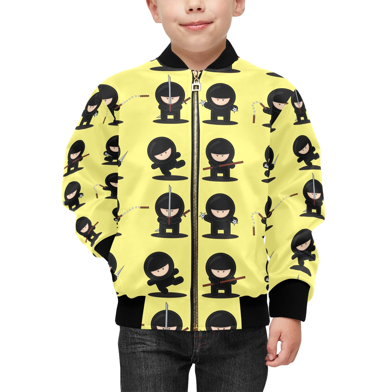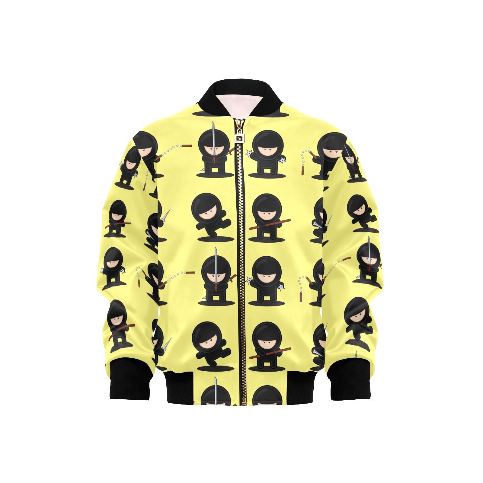 Cute ninja yellow background Kids' Boys' Girls' Bomber Jacket