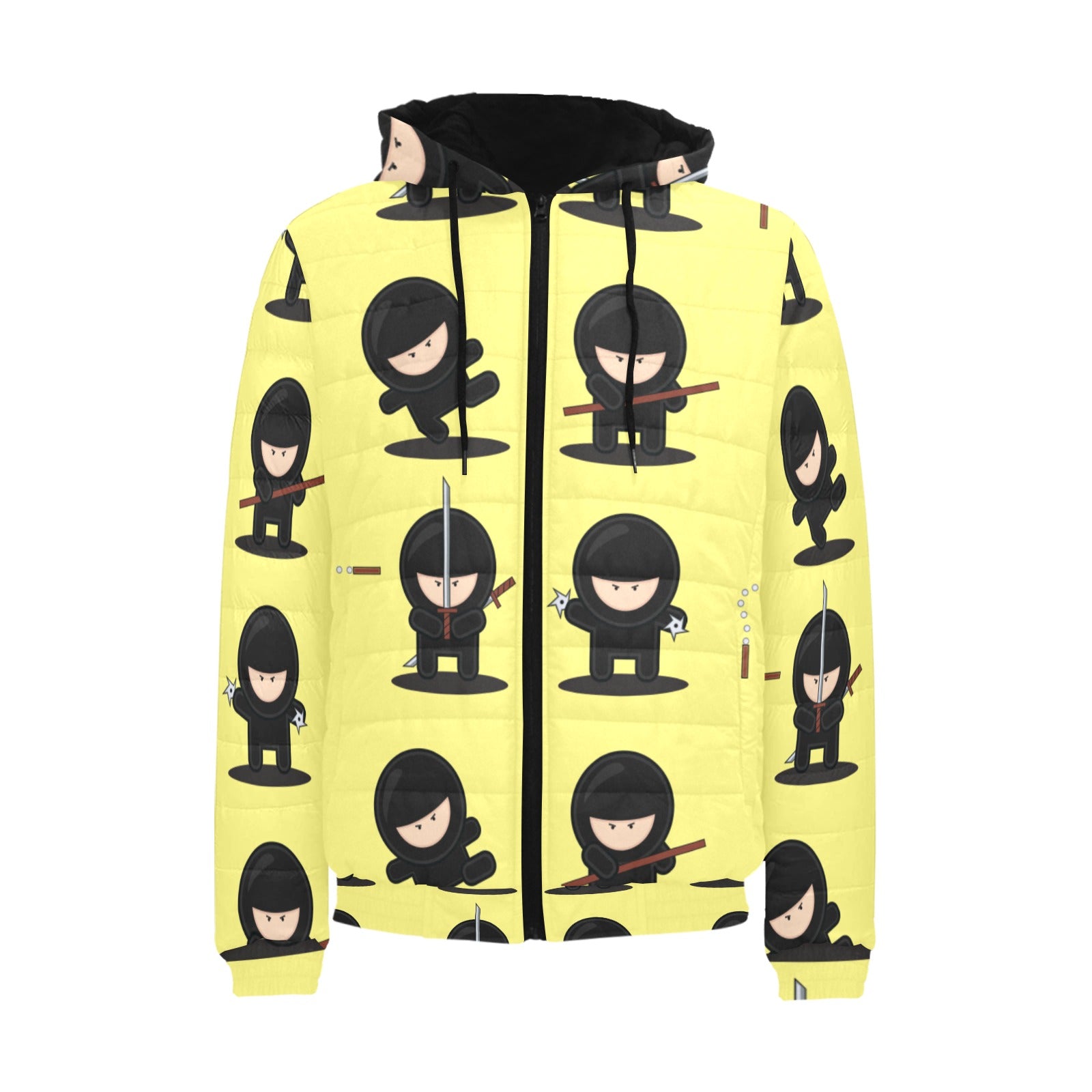 Cute ninja yellow background Men's Padded Hooded Jacket