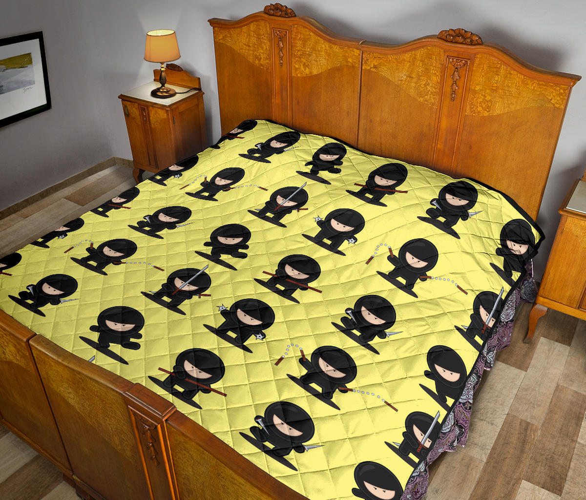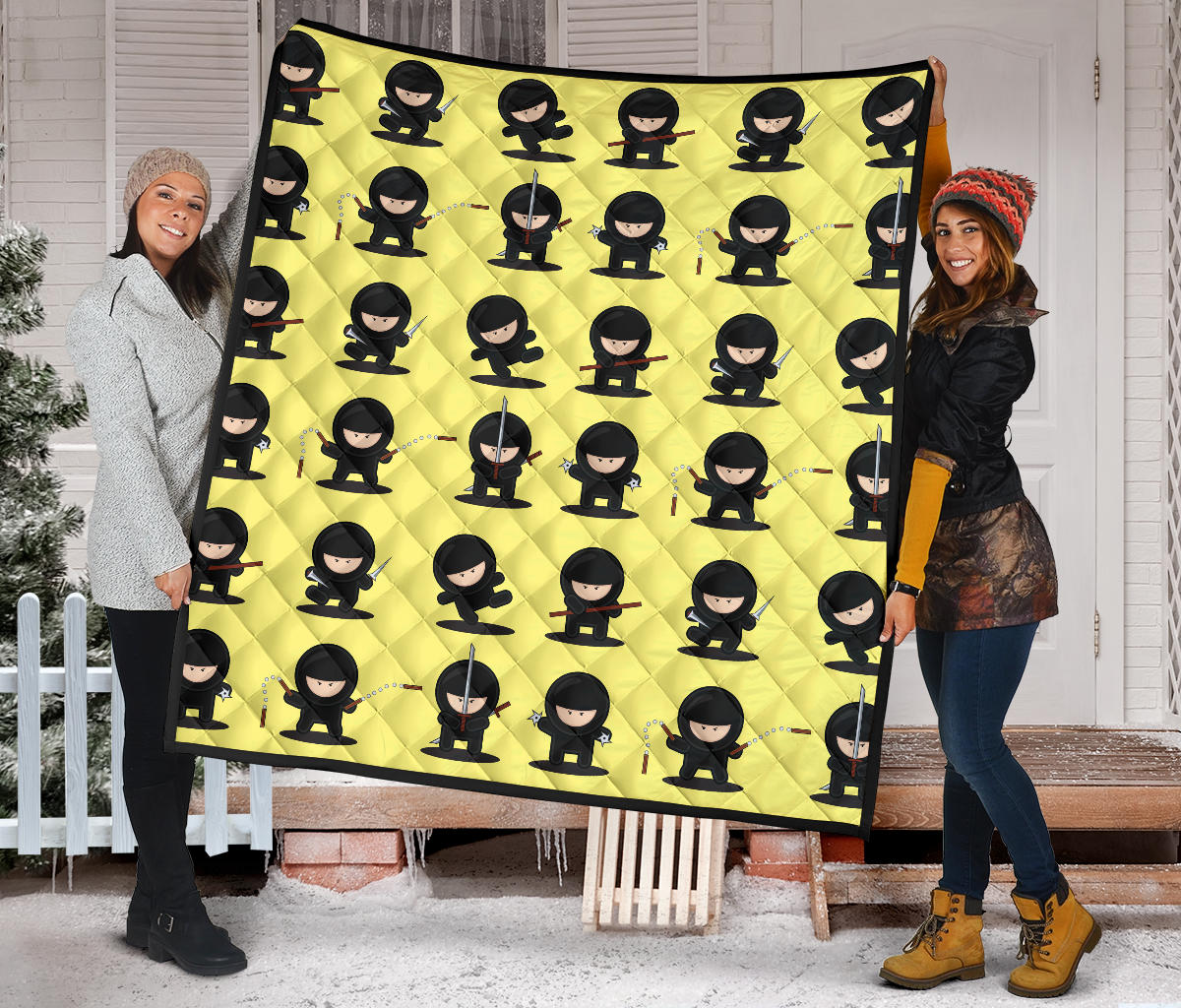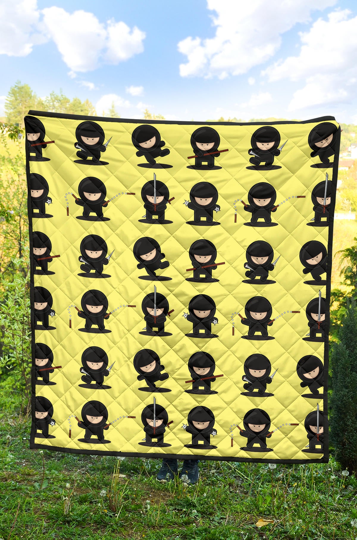Cute Ninja Yellow Background Premium Quilt is a uniqued design and limited item. It made to order, hand printed, and sewn with love in our factory.