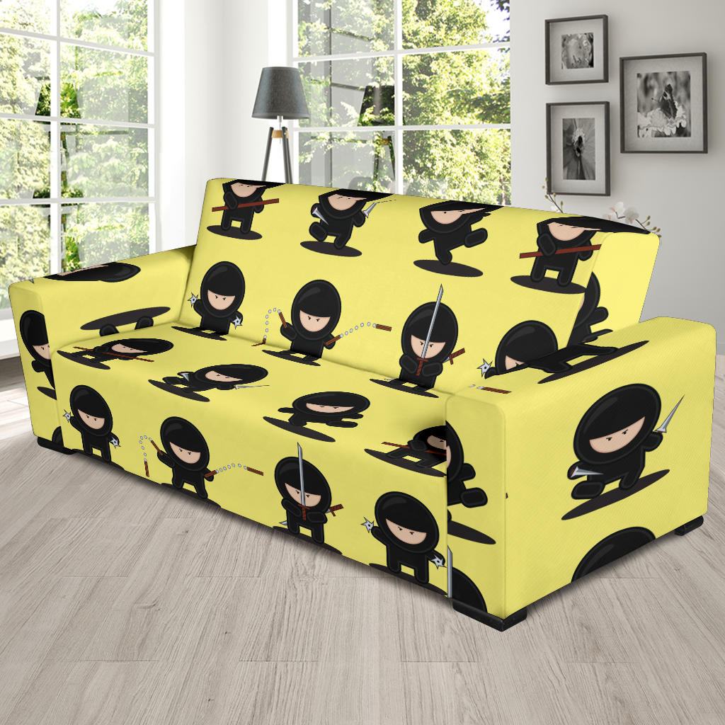 Cute ninja yellow background Sofa Slipcover is a uniqued design and limited item. It made to order, hand printed, and sewn with love in our factory.