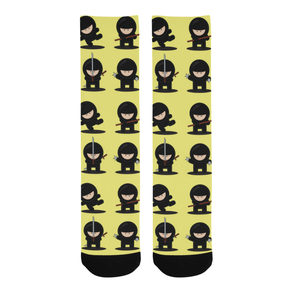 Cute ninja yellow background Crew Socks are uniqued design and limited item. It made to order, hand printed, and sewn with love in our factory.