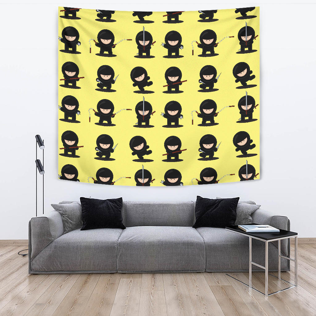 Cute Ninja Yellow Background Wall Tapestry
