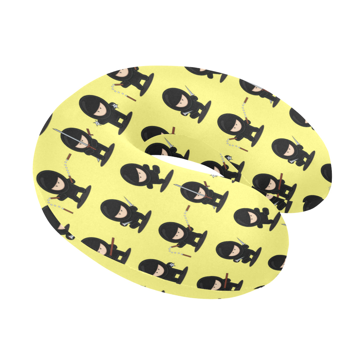 Cute ninja yellow background U-Shaped Travel Neck Pillow
