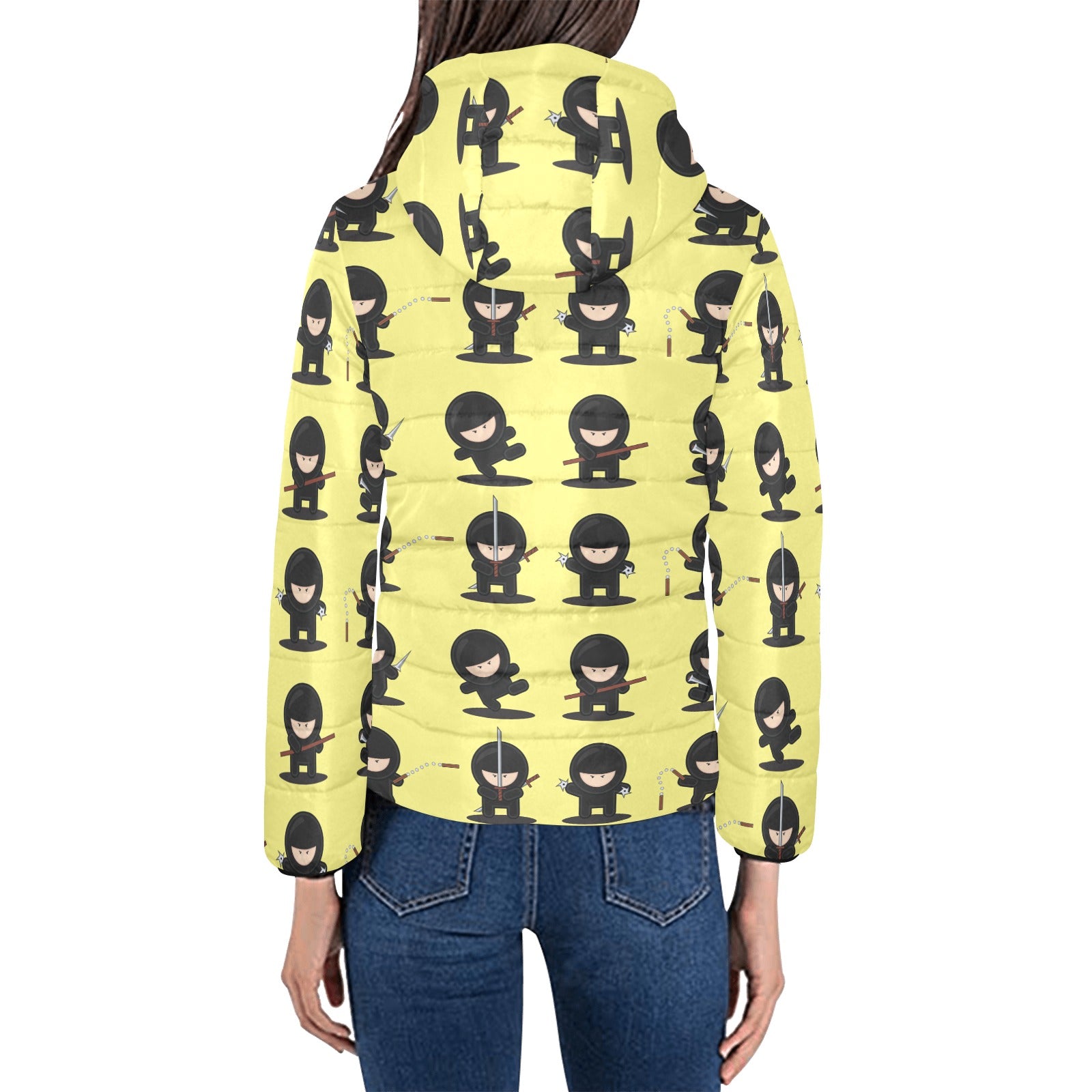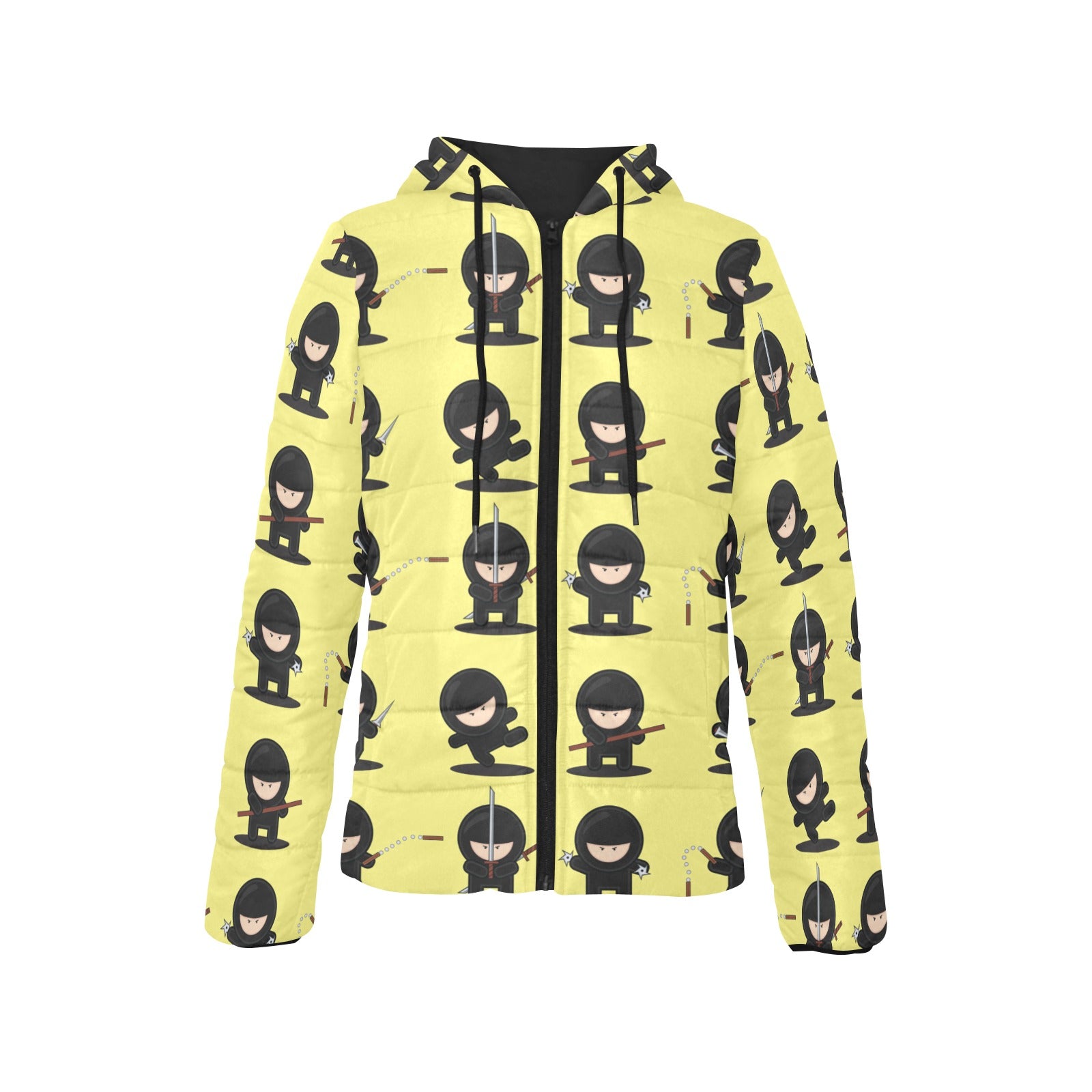 Cute ninja yellow background Women's Padded Hooded Jacket