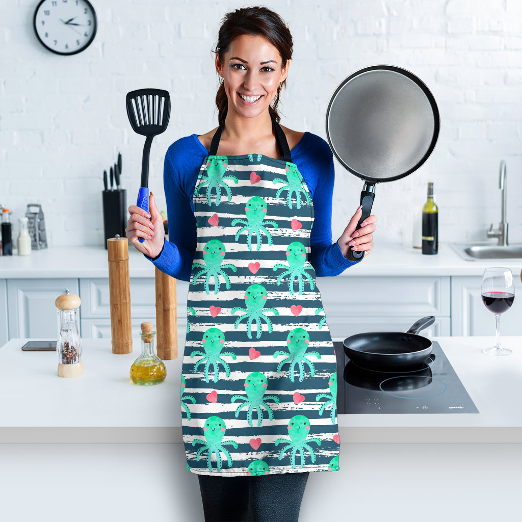 Cute Octopuses Heart Striped Background Adjustable Apron