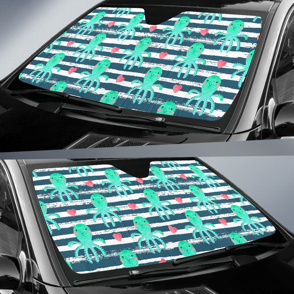 Cute Octopuses Heart Striped Background Car Sun Shade