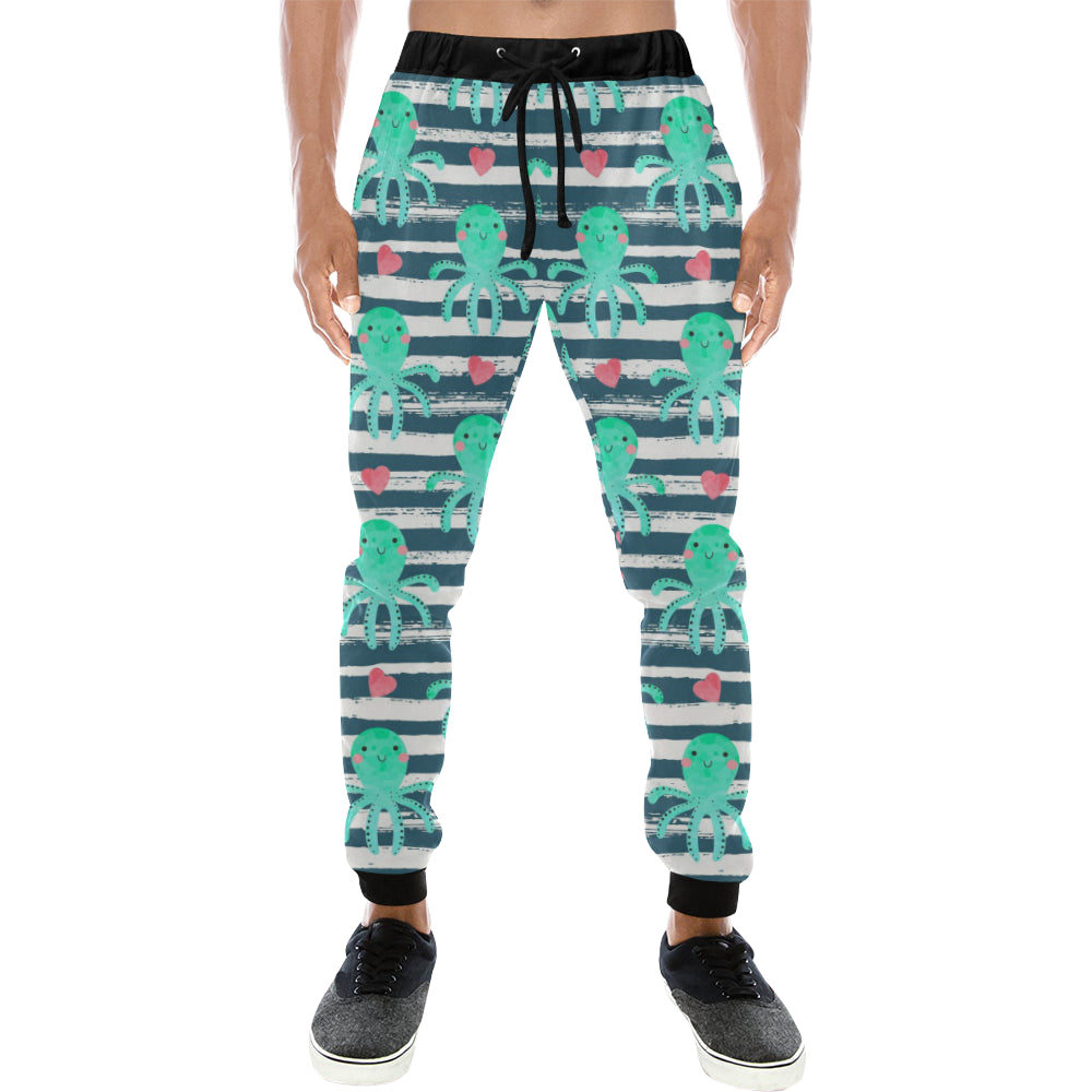 Cute octopuses heart striped background Unisex Casual Sweatpants