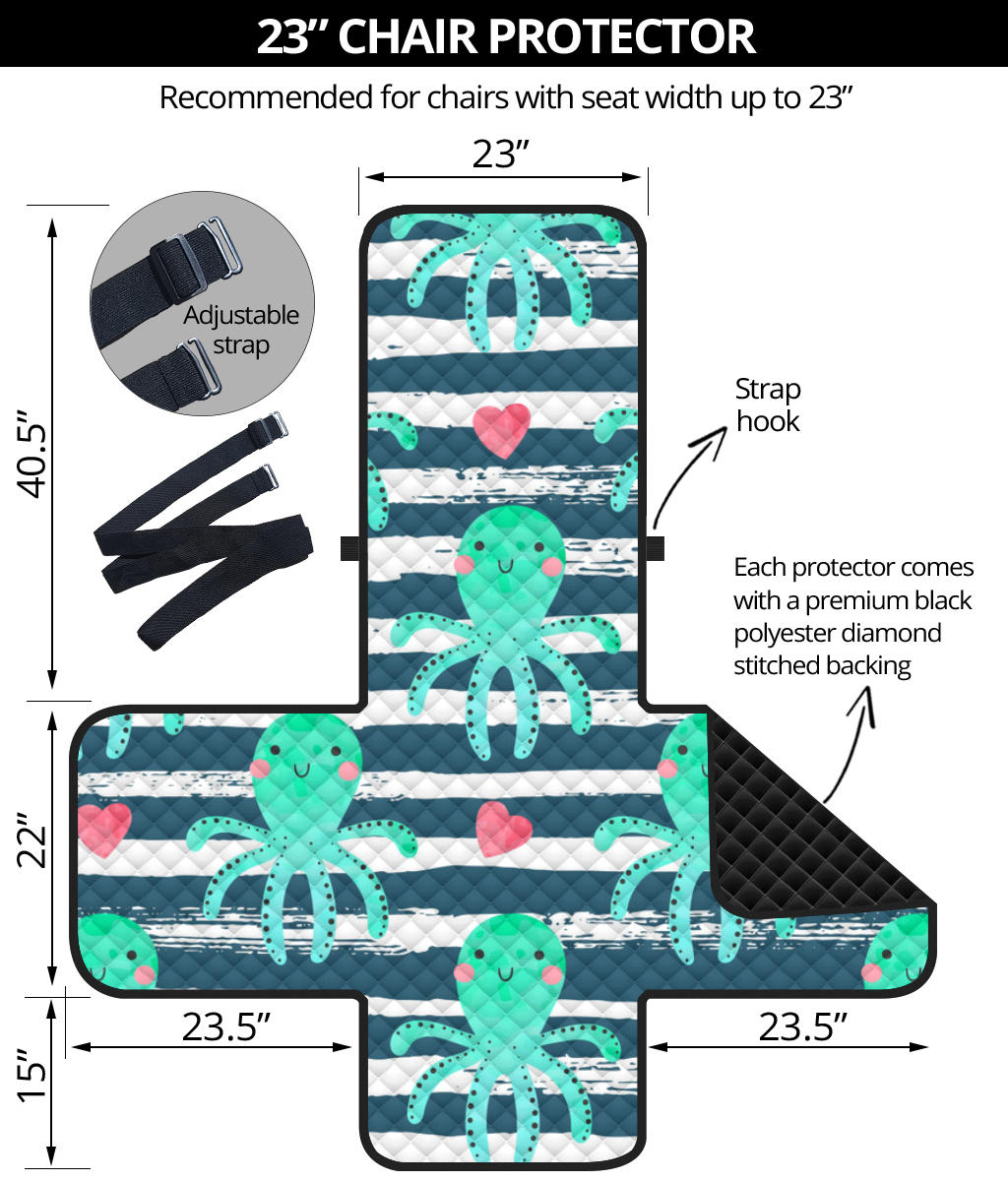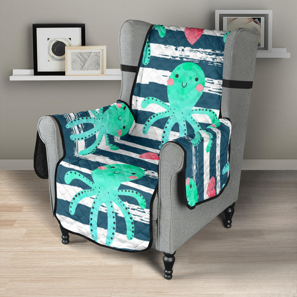 Cute octopuses heart striped background Chair Cover Protector