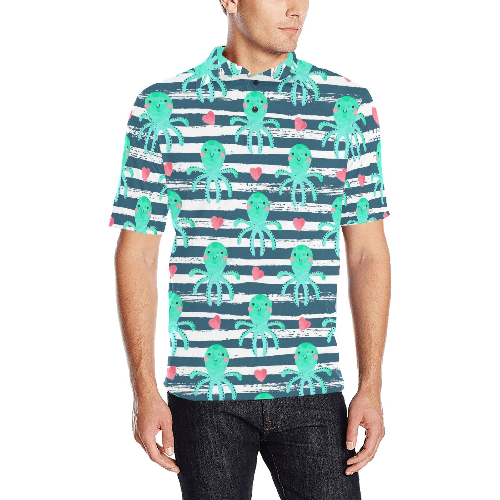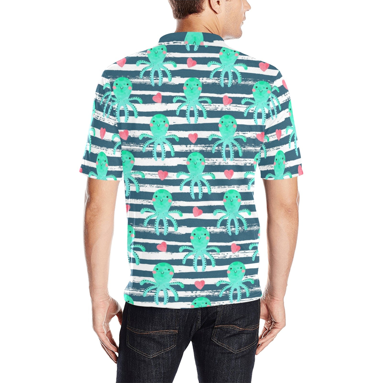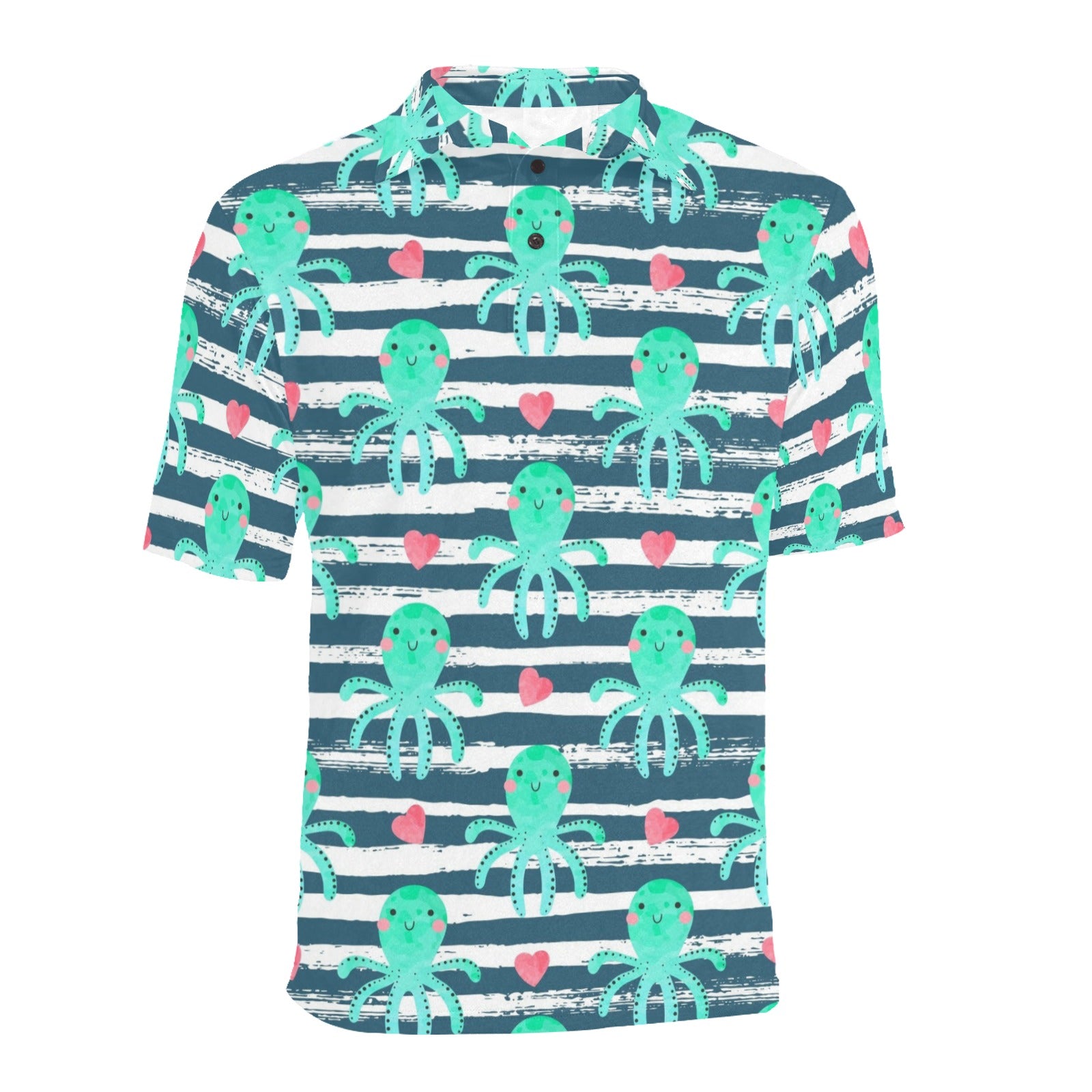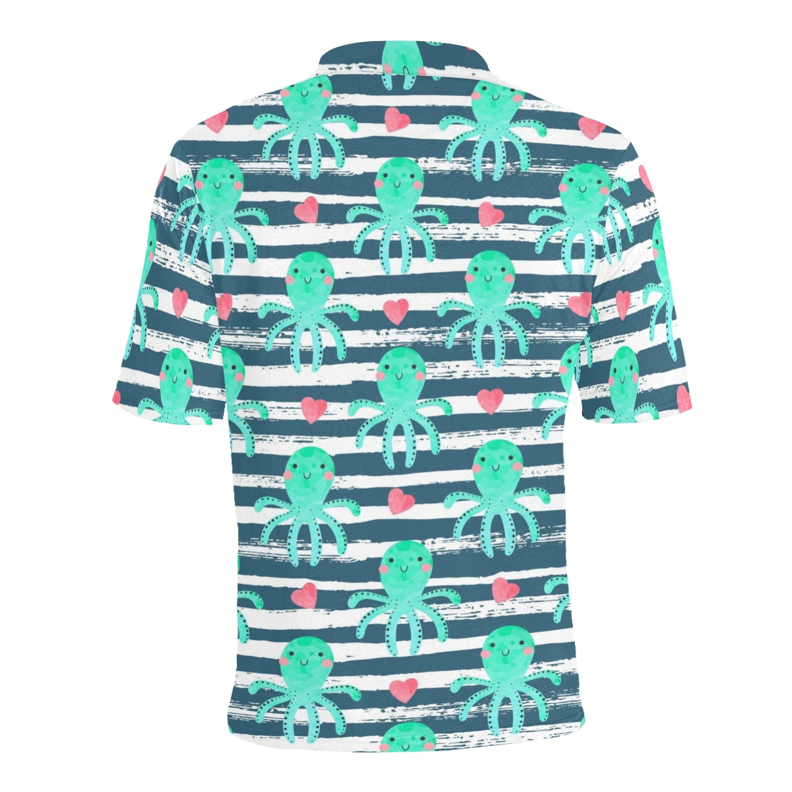 Cute octopuses heart striped background Men's All Over Print Polo Shirt