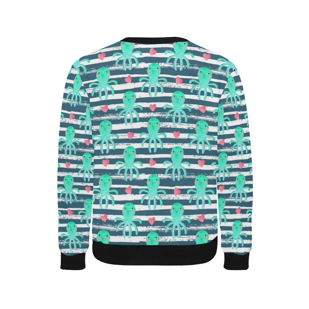 Cute octopuses heart striped background Men's Crew Neck Sweatshirt