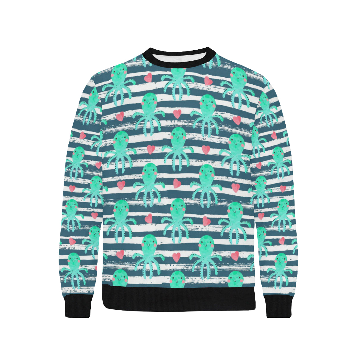 Cute octopuses heart striped background Men's Crew Neck Sweatshirt is a uniqued design and limited item. It made to order, hand printed, and sewn with love in our factory.