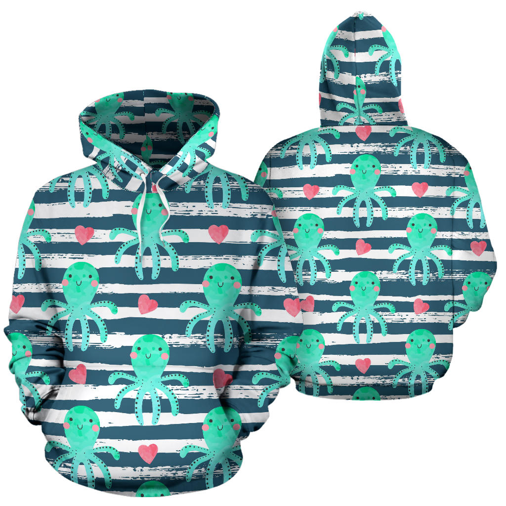Cute Octopuses Heart Striped Background Men Women Pullover Hoodie
