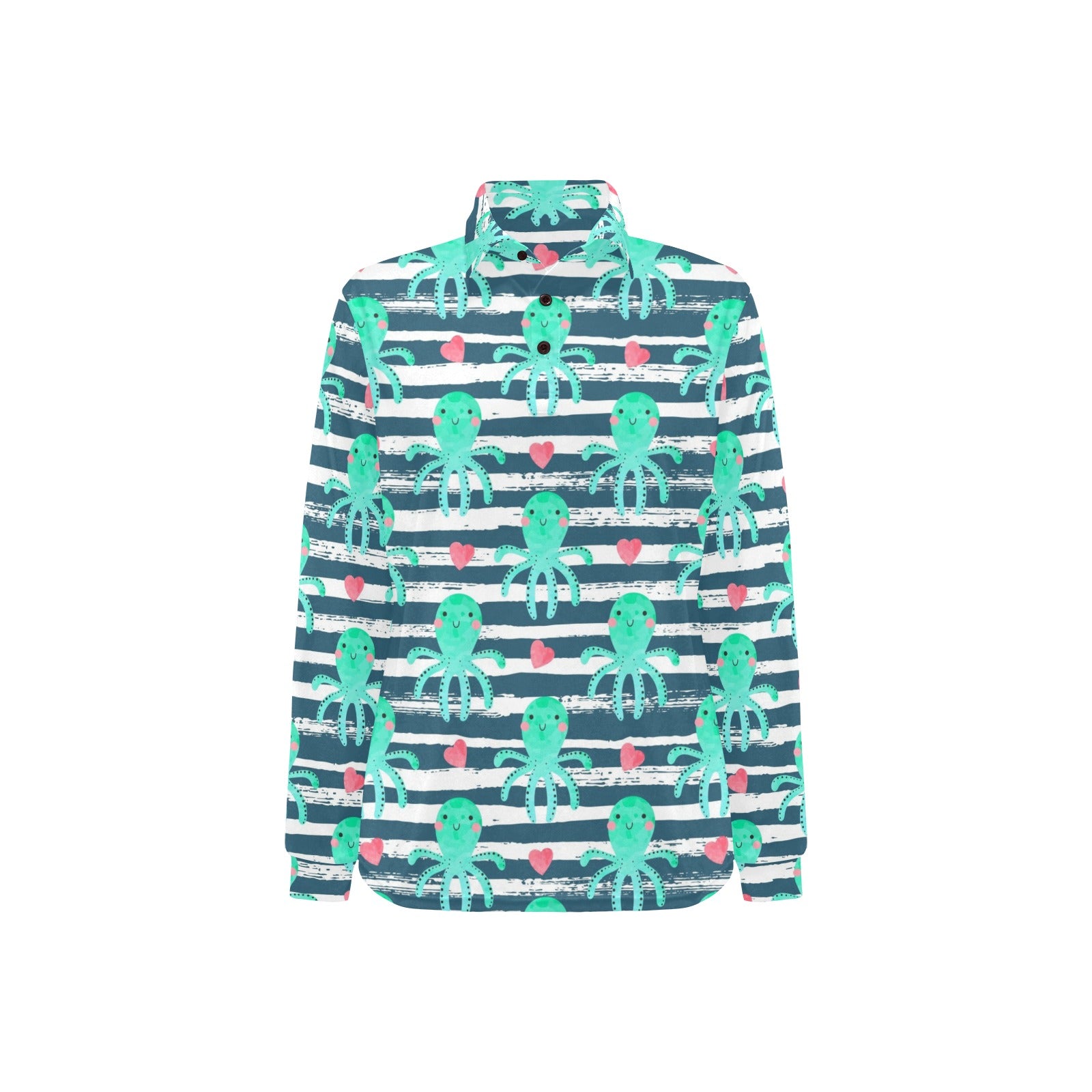 Cute octopuses heart striped background Women's Long Sleeve Polo Shirt