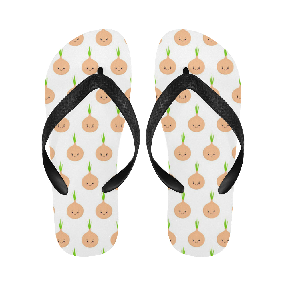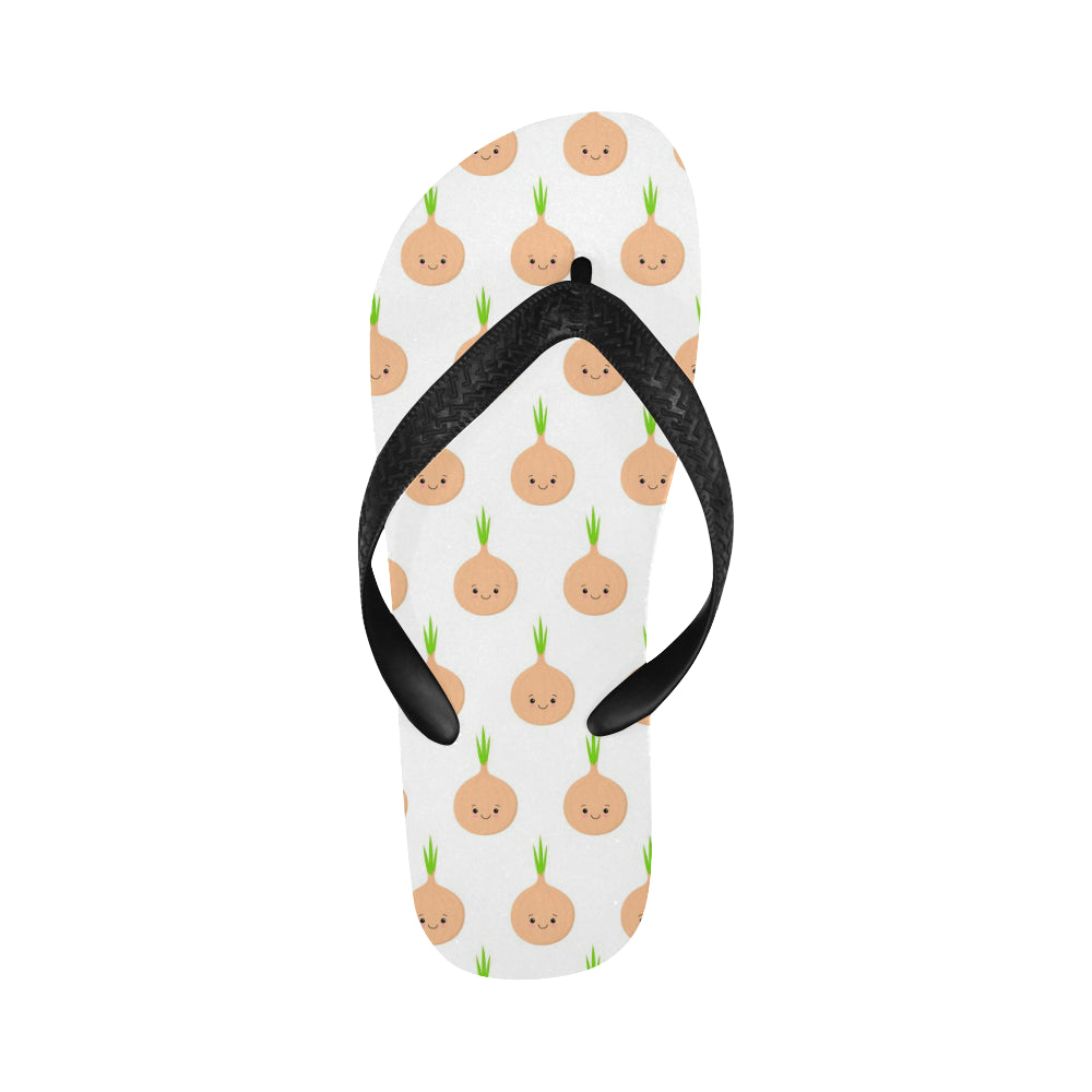 cute onions smiling faces Unisex Flip Flops is a uniqued design and limited item. It made to order, hand printed, and sewn with love in our factory.