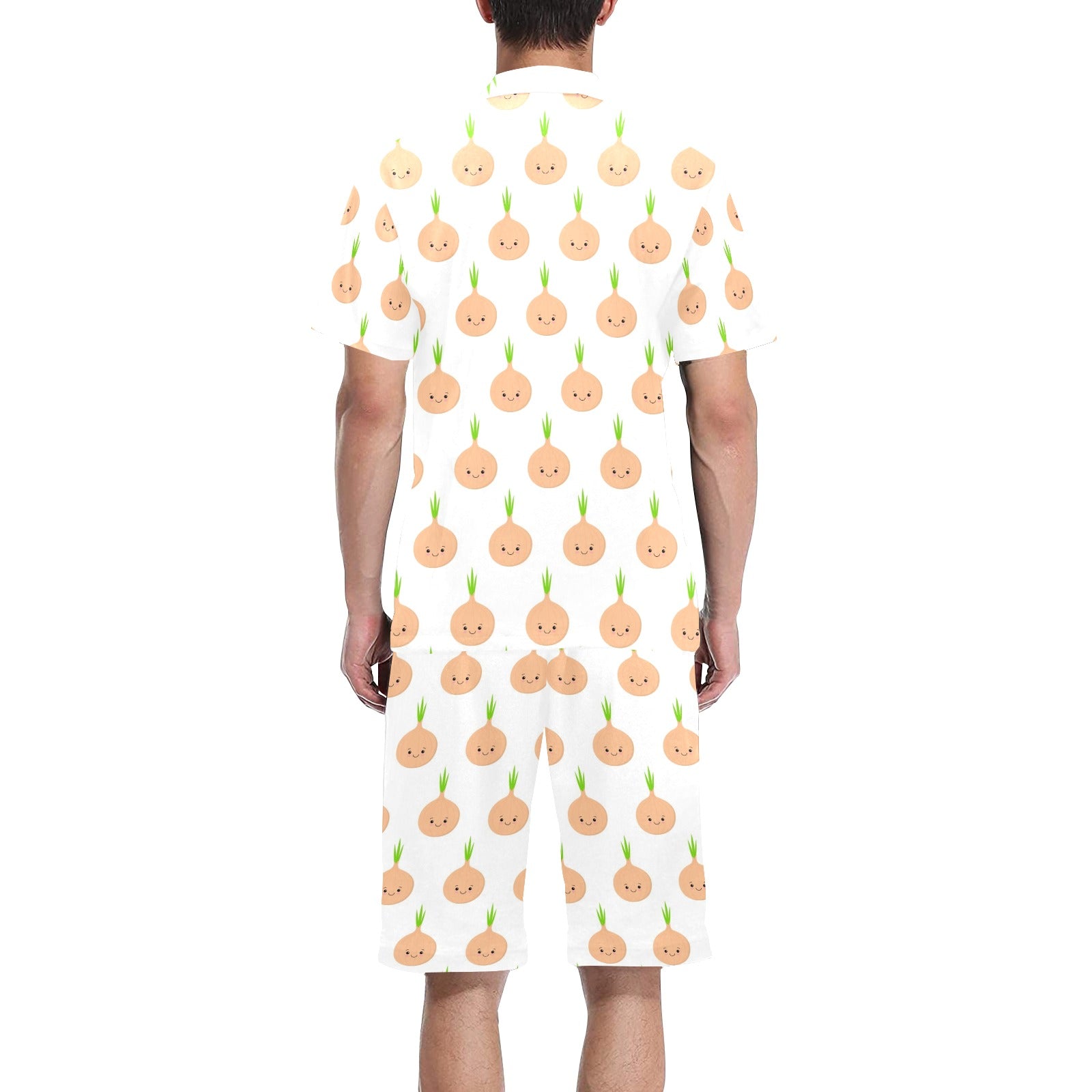 cute onions smiling faces Men's V-Neck Short Pajama Set