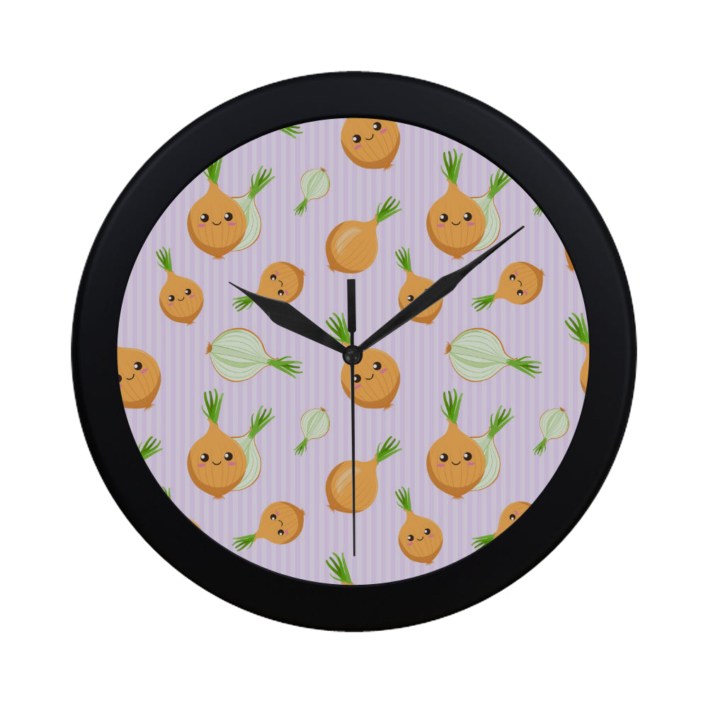 cute onions smiling faces purple background Elegant Black Wall Clock
