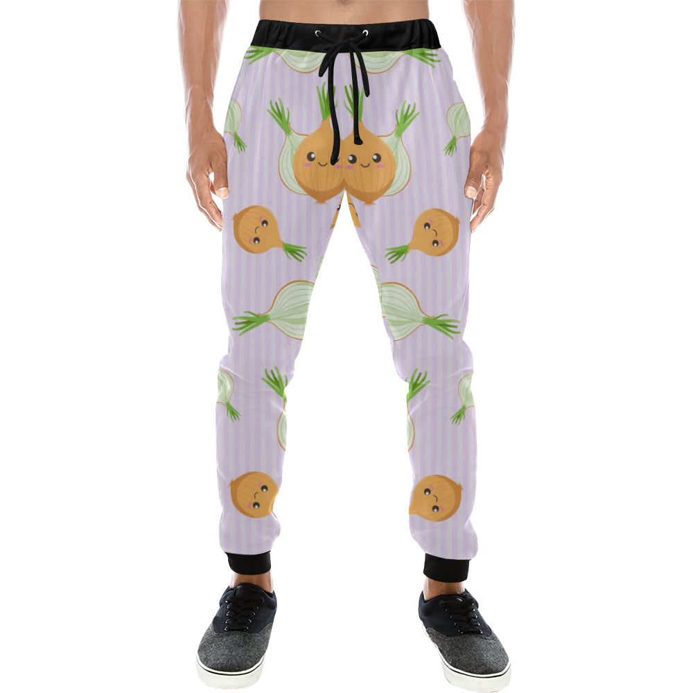 cute onions smiling faces purple background Unisex Casual Sweatpants