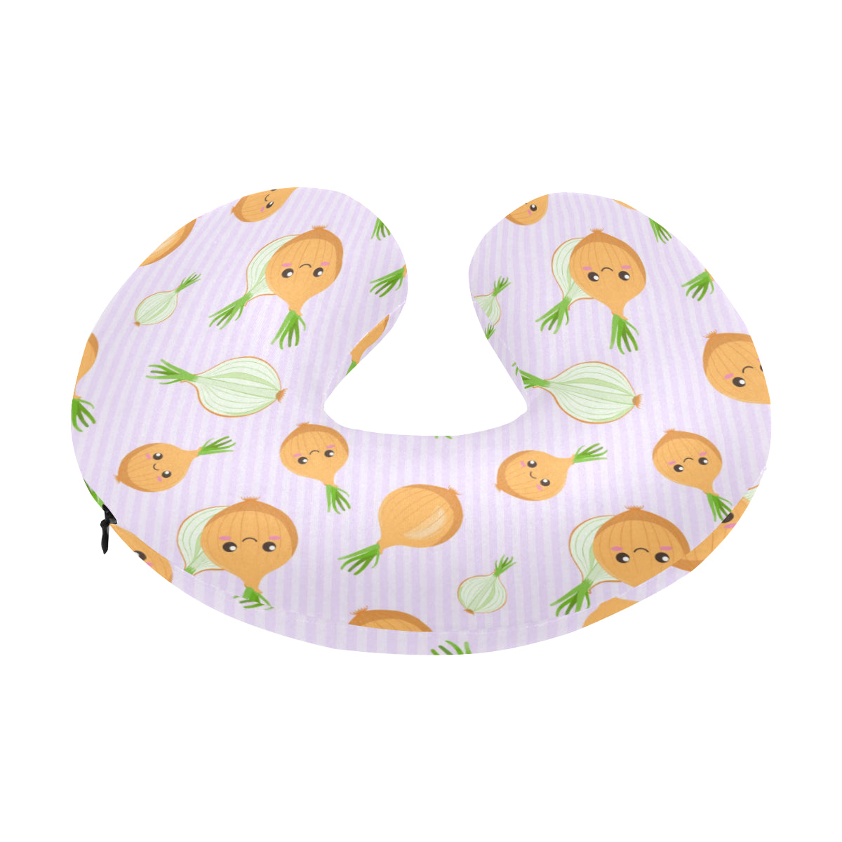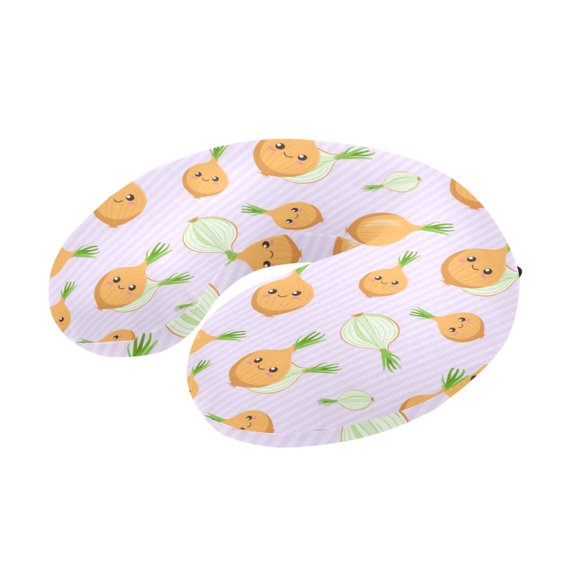 cute onions smiling faces purple background U-Shaped Travel Neck Pillow