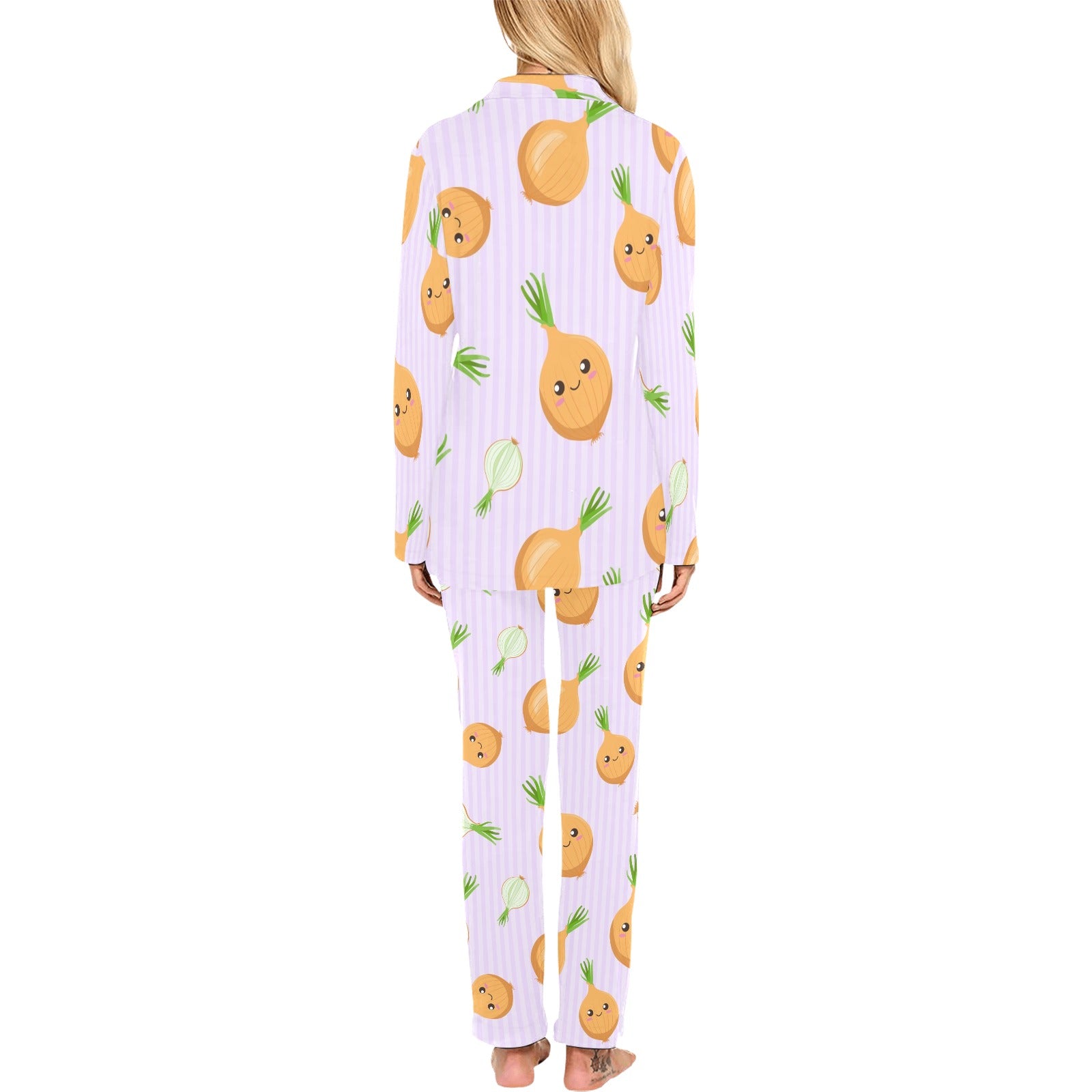 cute onions smiling faces purple background Women's Long Pajama Set