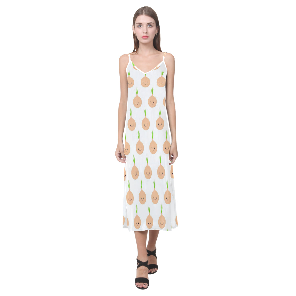 cute onions smiling faces V-Neck Open Fork Long Dress