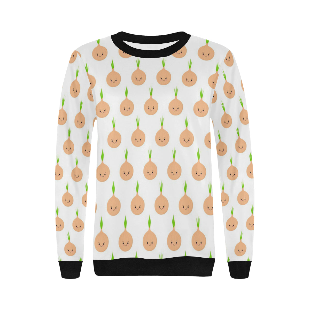 cute onions smiling faces Women's Crew Neck Sweatshirt