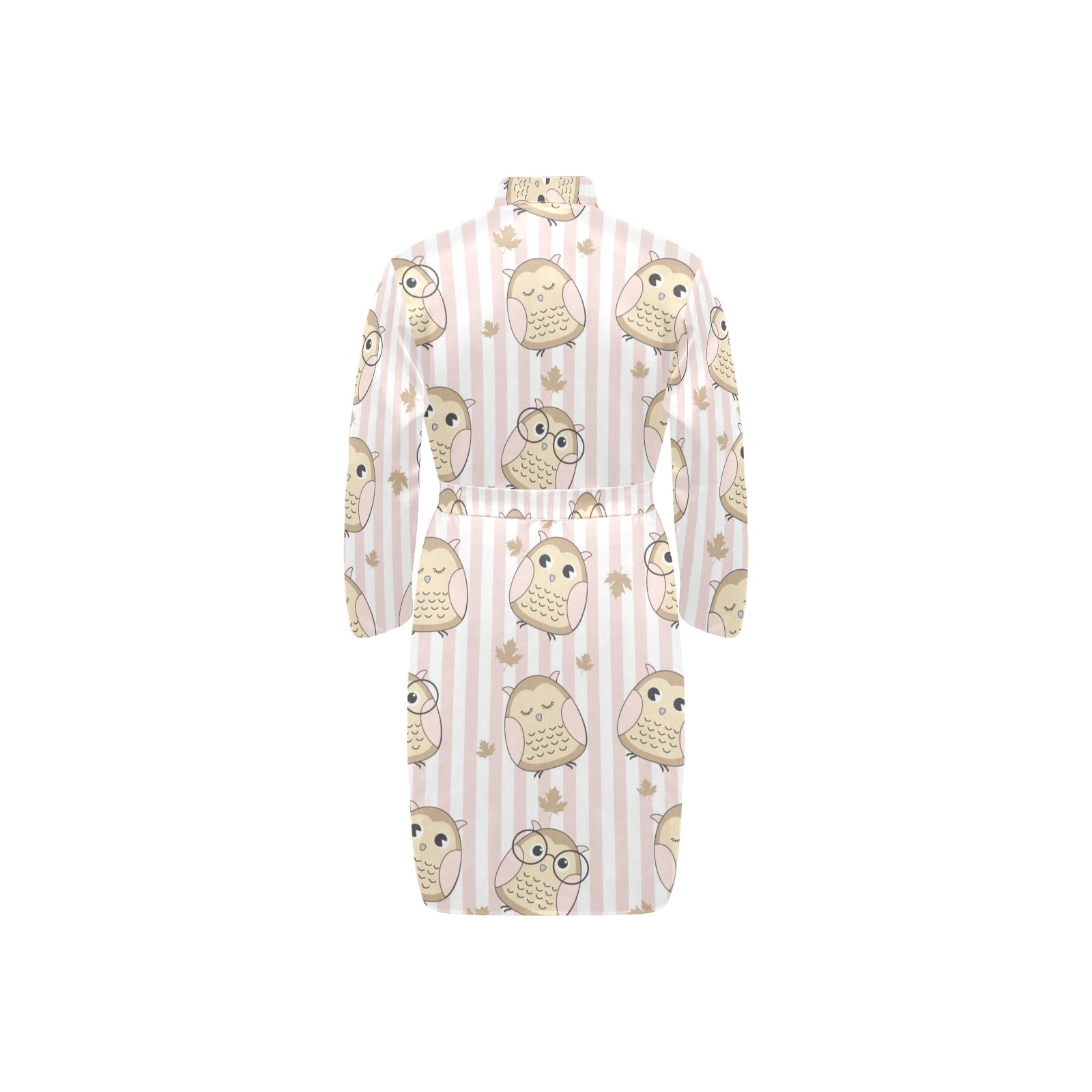 cute owl leaf Men's Long Sleeve Belted Night Robe