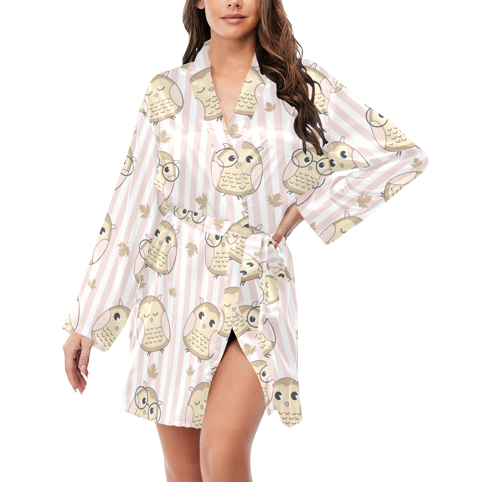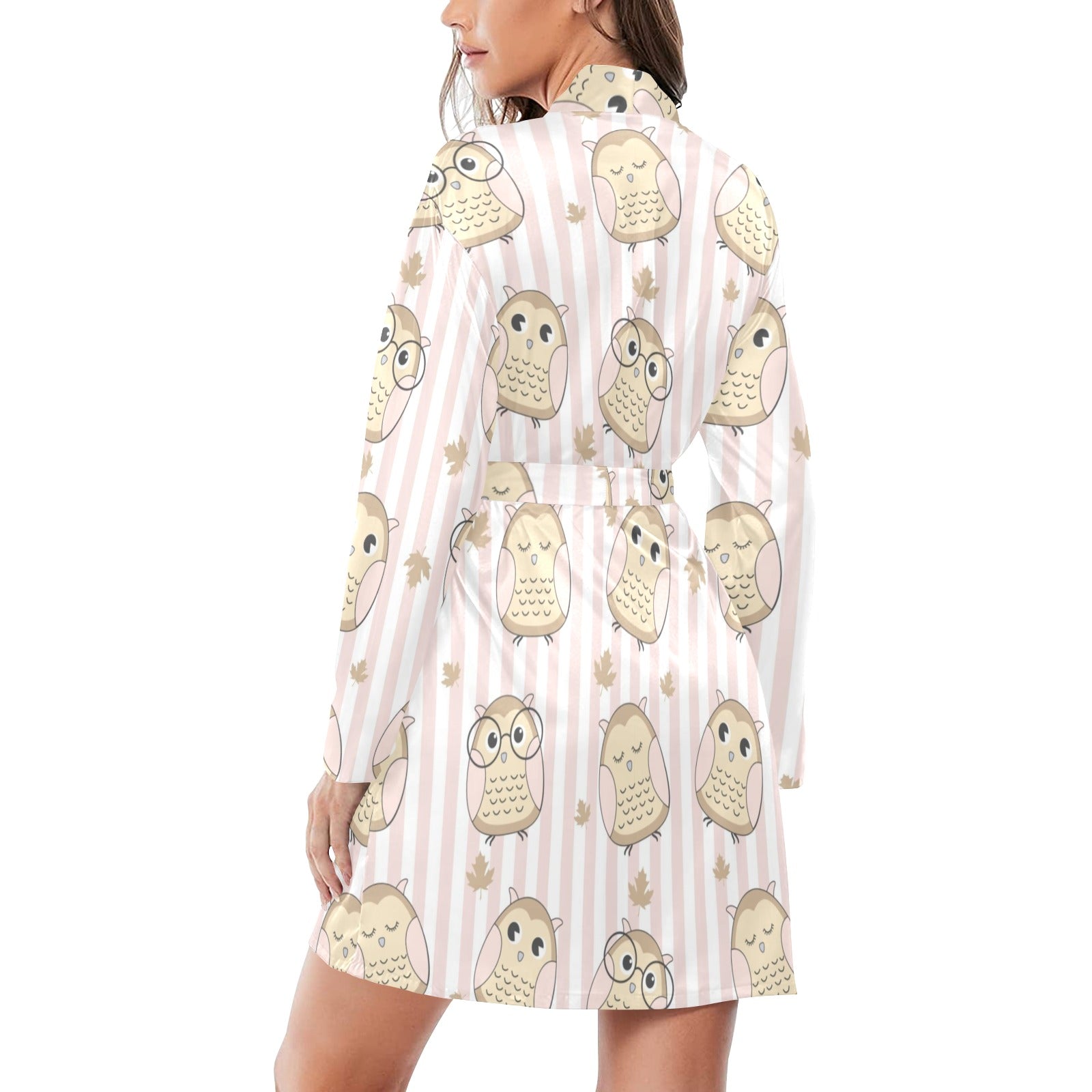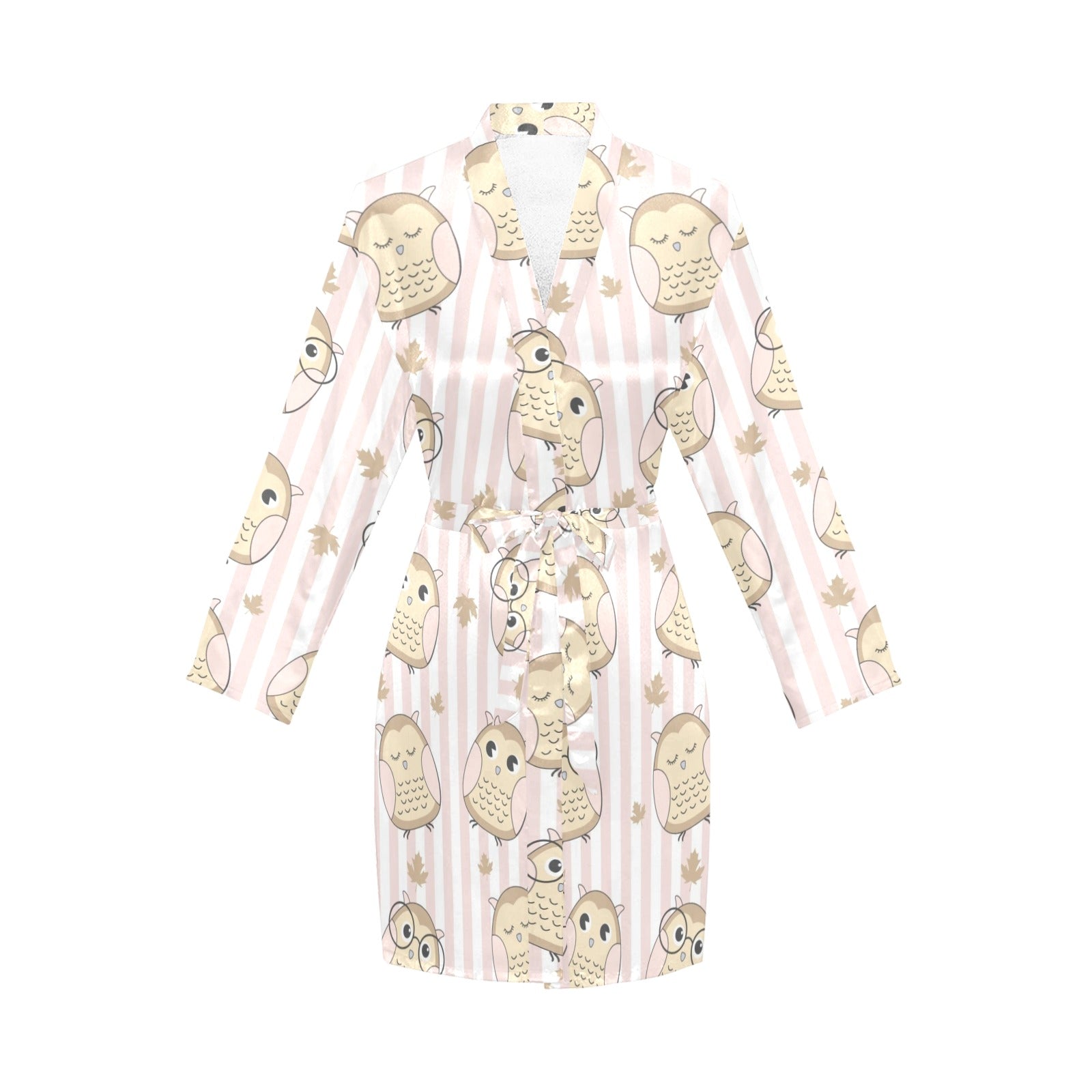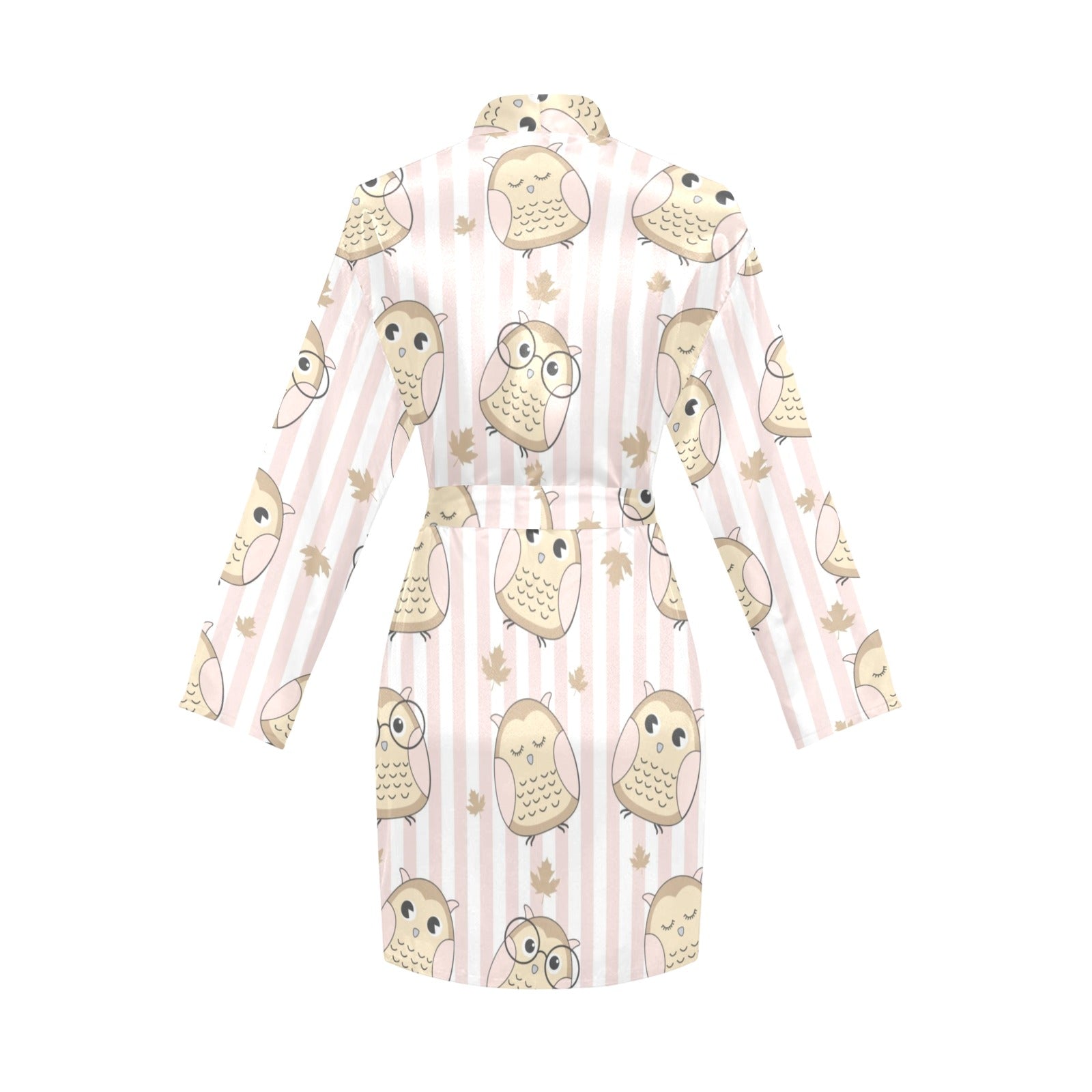 cute owl leaf Women's Long Sleeve Belted Night Robe