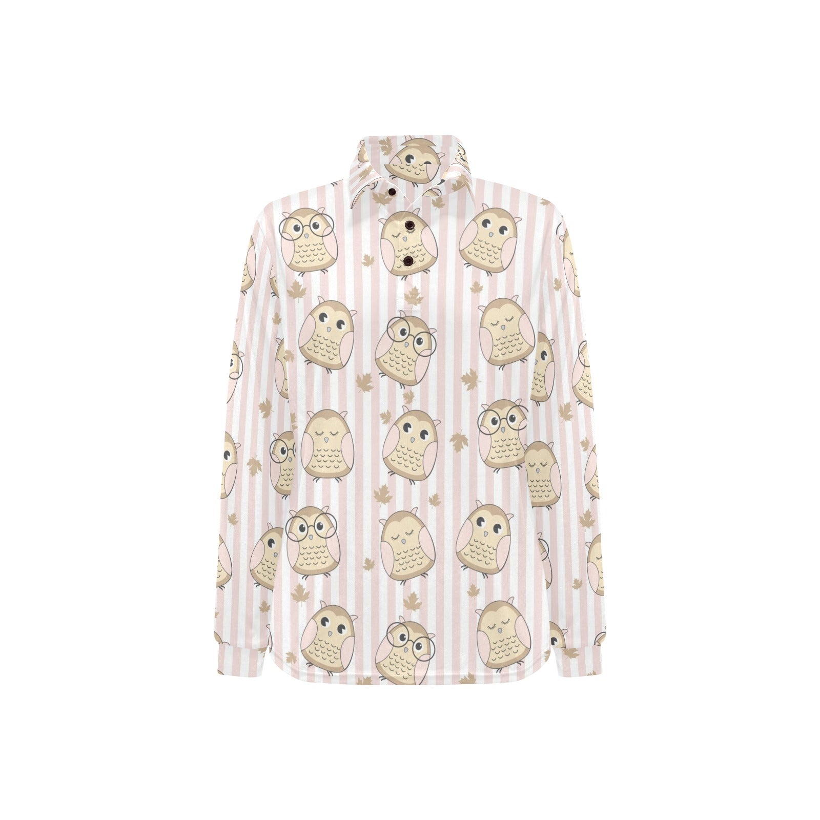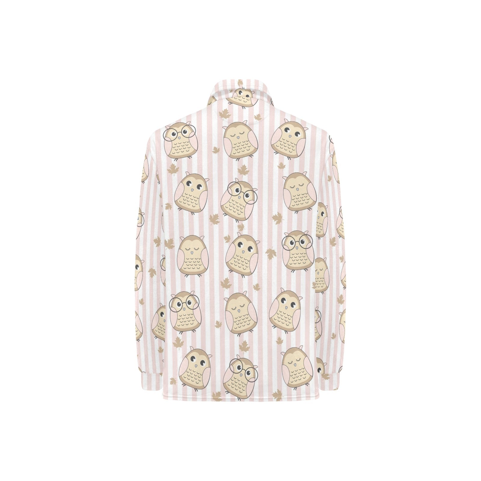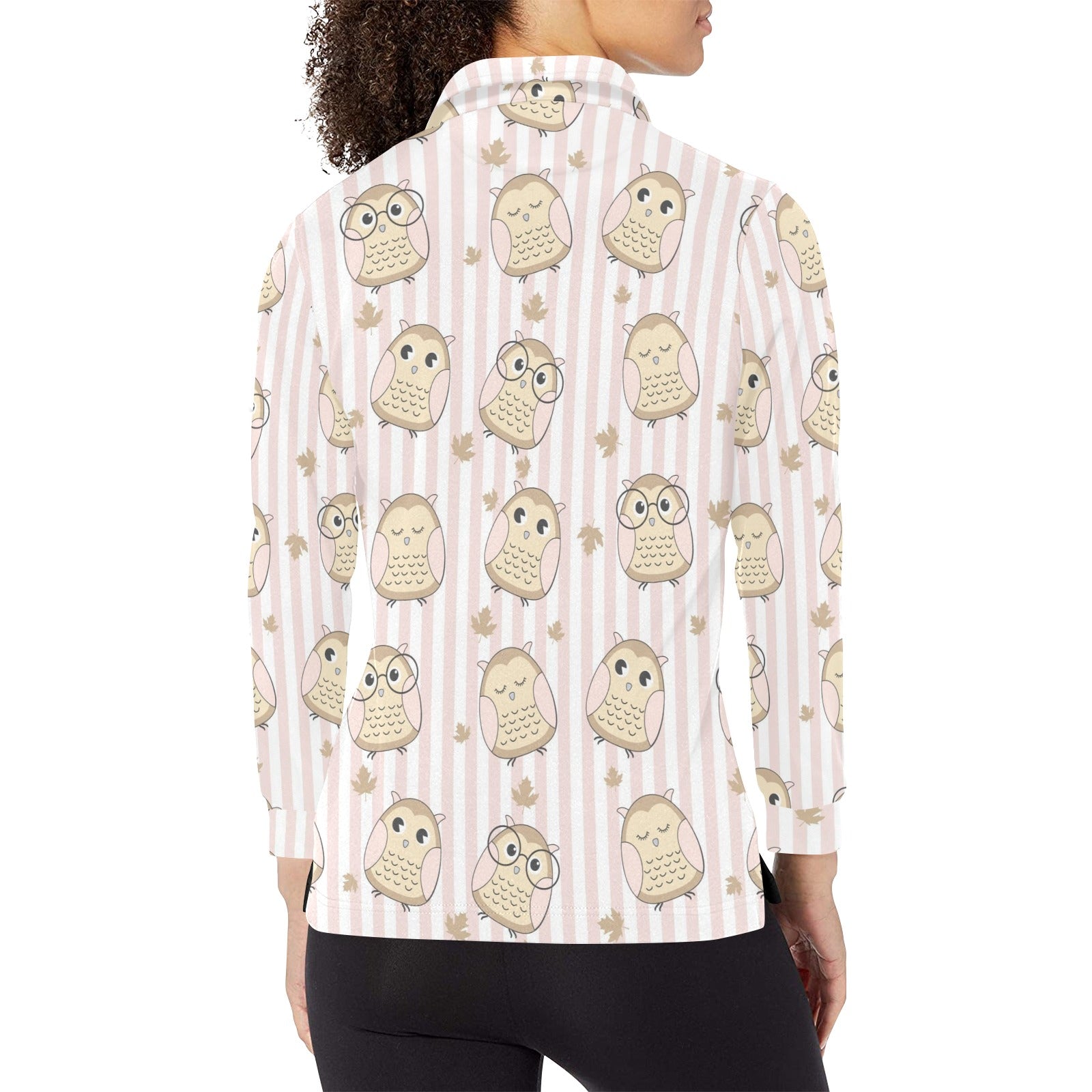 cute owl leaf Women's Long Sleeve Polo Shirt