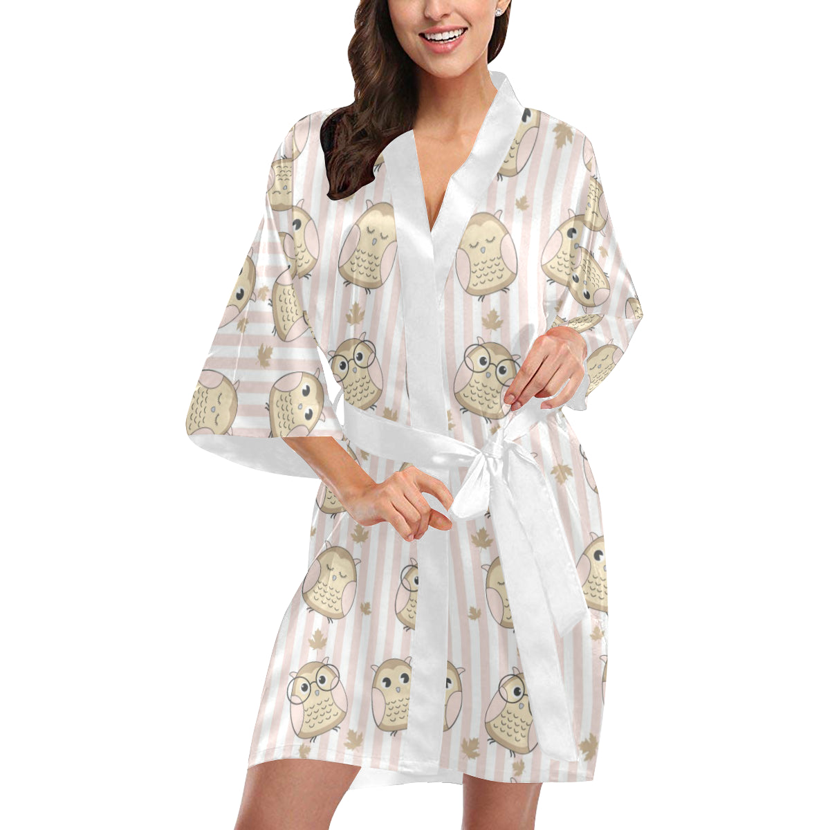 cute owl leaf Women's Short Kimono Robe is a uniqued design and limited item. It made to order, hand printed, and sewn with love in our factory.