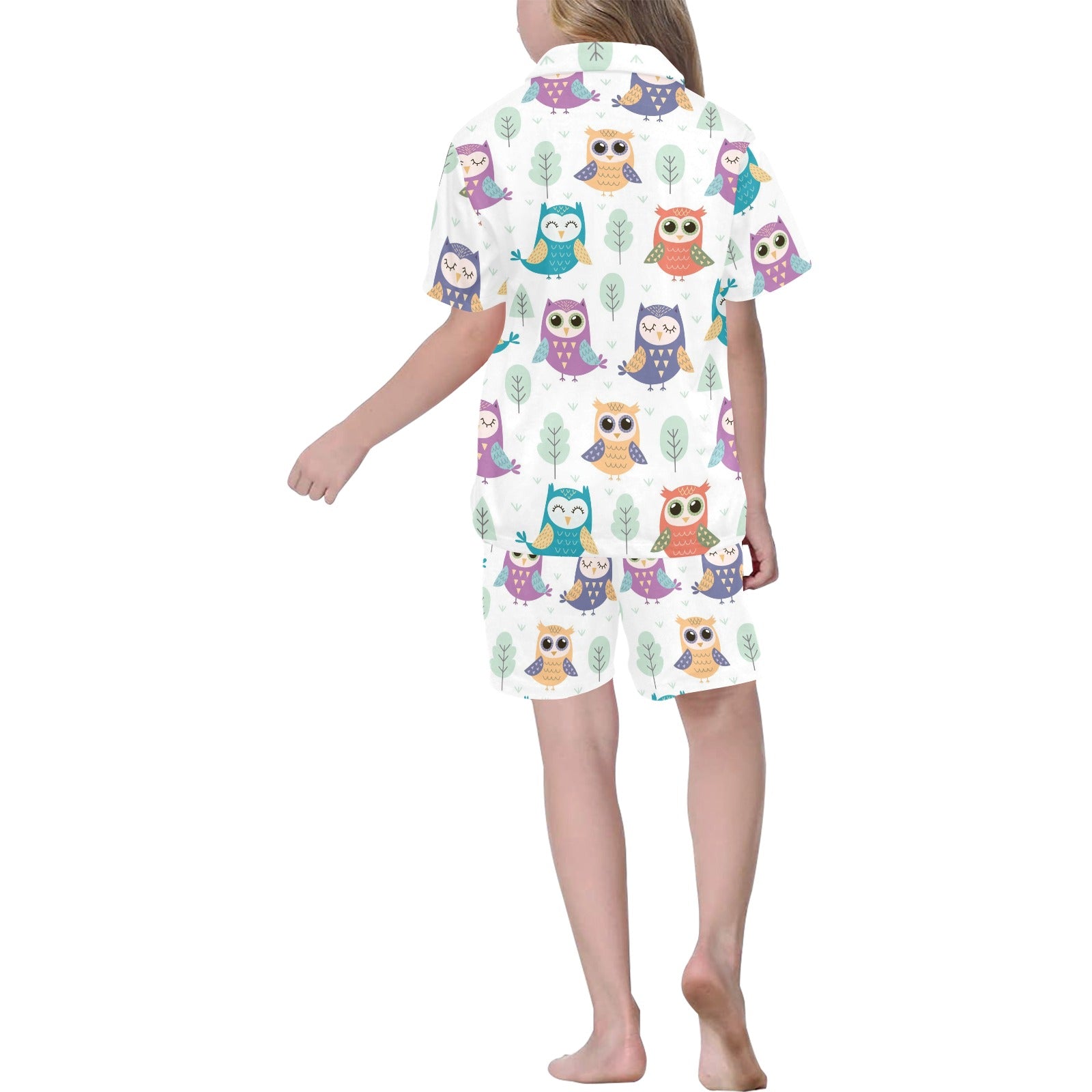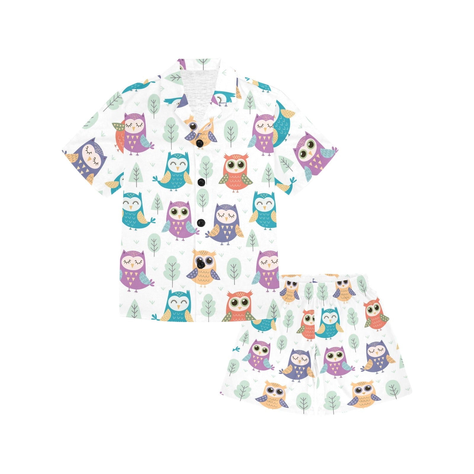 Cute owl pattern Kids' Boys' Girls' V-Neck Short Pajama Set