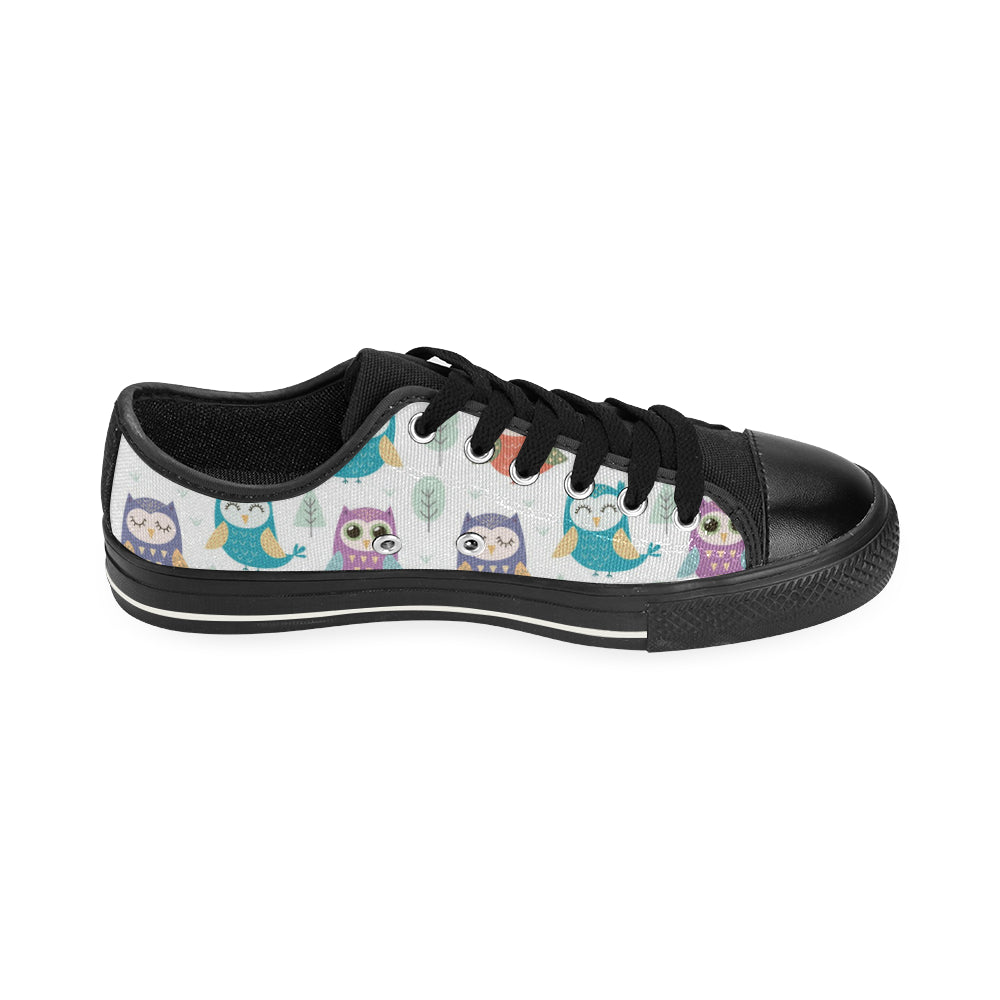 Cute owl pattern Men's Low Top Canvas Shoes Black