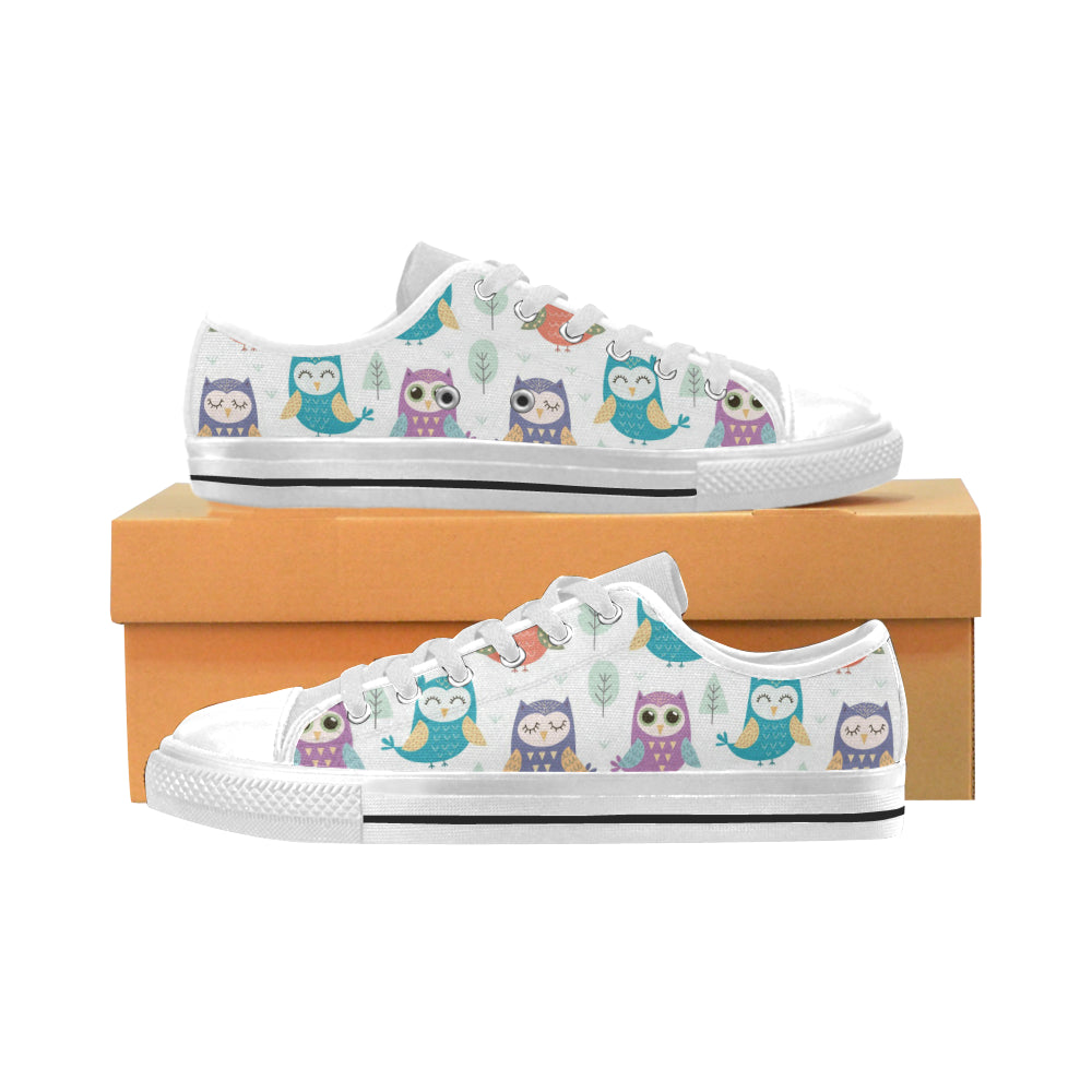 Cute owl pattern Men's Low Top Canvas Shoes White