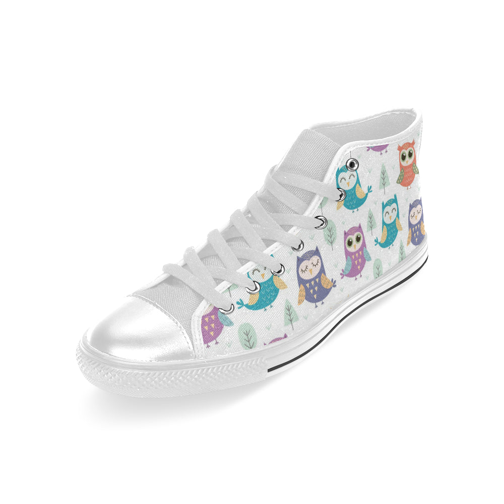 Cute owl pattern Men's High Top Canvas Shoes White